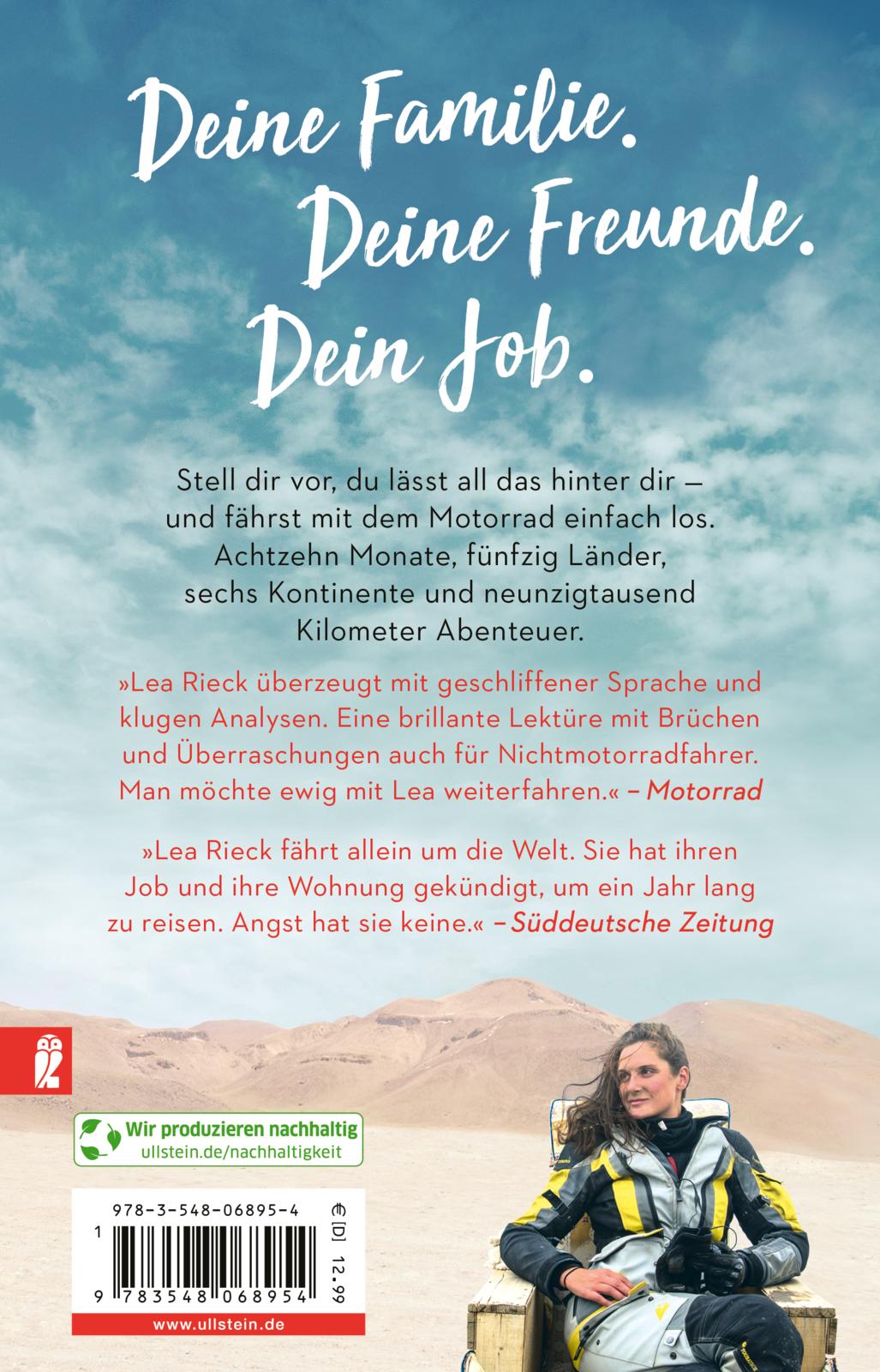 Stell dir vor, du lässt dein ganzes Leben von einem auf den anderen Tag hinter dir. Und fährst einfach los. In ihrem einzigartigen Reisebericht erzählt Lea Rieck eine berührende Geschichte vom Fallen und Wiederaufstehen, von Mut und Gelassenheit, Glaube an sich selbst und andere, Empathie, Hoffnung und Entschlossenheit. Von einer, die auszog - die aber nicht das Fürchten lernte, sondern auf ihrem eigenen steinigen Weg Abenteuer, Freundschaft und die Liebe fand.