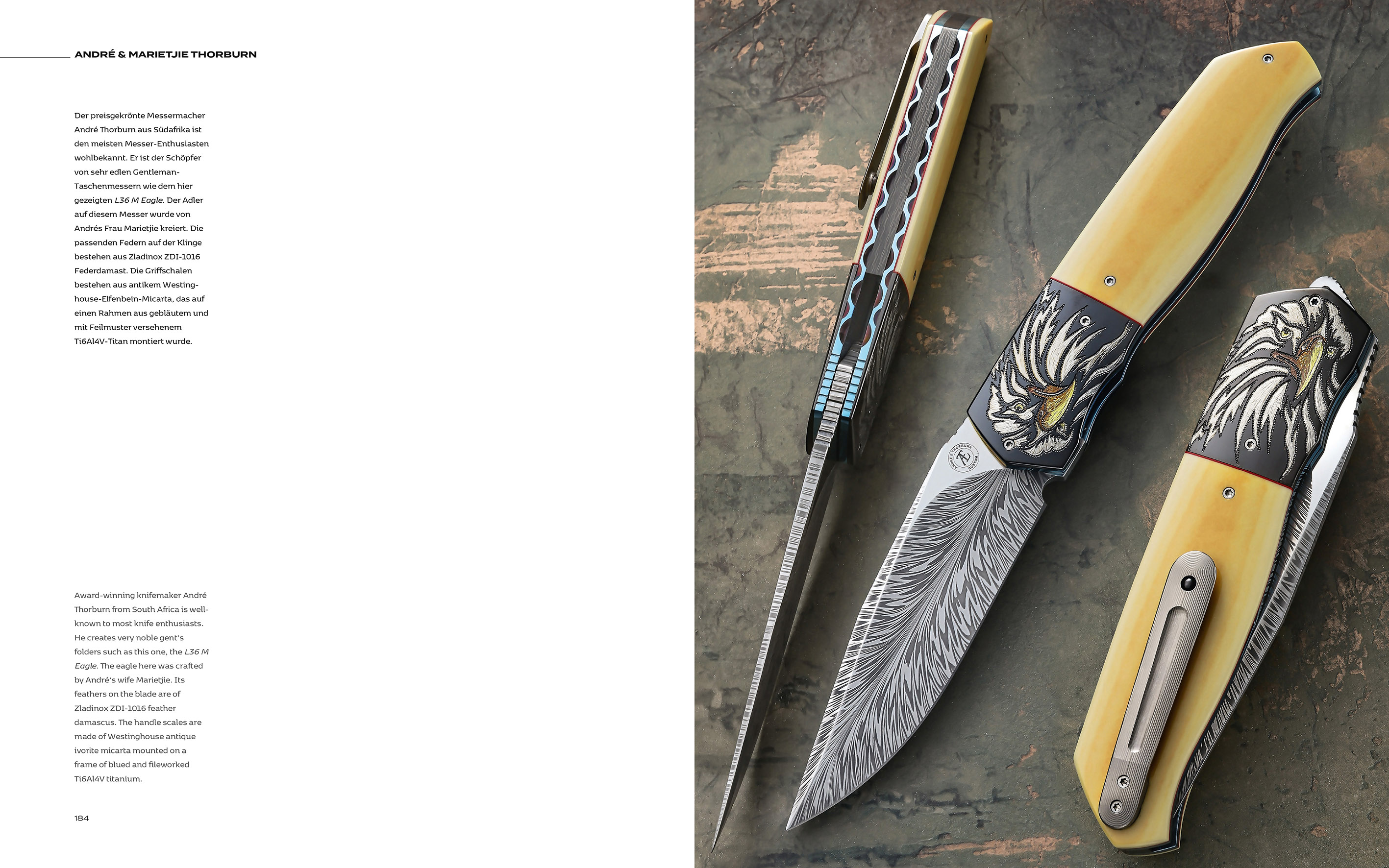Messer sind mehr als Werkzeuge. Sie können wahre Kunstwerke sein, als Einzelstück gefertigt von hervorragenden Handwerkern, die harmonische Ästhetik, innovative Funktionalität, edelste Materialien und perfekte Verarbeitung zu herausragenden Objekten vereinen. Aufwändig geschmiedete Damaststähle machen diese Messer noch mehr zu individuellen Unikaten und zu einem optischen Genuss.Jim Cooper ist einer der profiliertesten Messer-Fotografen der Welt. In diesem Band hat er 100 Messer in großartigen Fotografien zusammengestellt. Sie zeigen, was in der Weltspitze der Custom-Knife-Szene möglich ist und welche Faszination diese Sammelobjekte ausstrahlen.