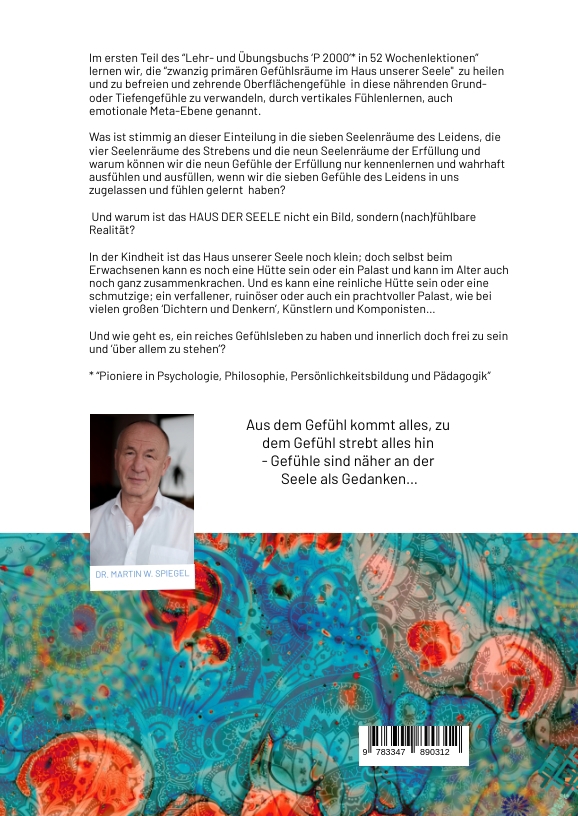 | Schlagworte | Aus dem Gefühl kommt alles, zu dem Gefühl will alles hin • Das Haus der Seele und der Pool der Schmerzen • Emotionale Intelligenz • Emotionen mit einander sprechen lassen • Emotionen regulieren sich von alleine • Emotionen sich selbst regulieren lassen • Emotionen zulassen statt sie zu regulieren • Gefühle als Quelle und Ziel von Bewusstsein • Heilung und Befreiung der Gefühle • Heilung und Befreiung des Hauses der Seele • Liebe deine Gefühle • Liebe dein Fühlen • Unterschied Bewusstsein - Seele • Zehrende Gefühle in nährende Gefühle verwandeln |