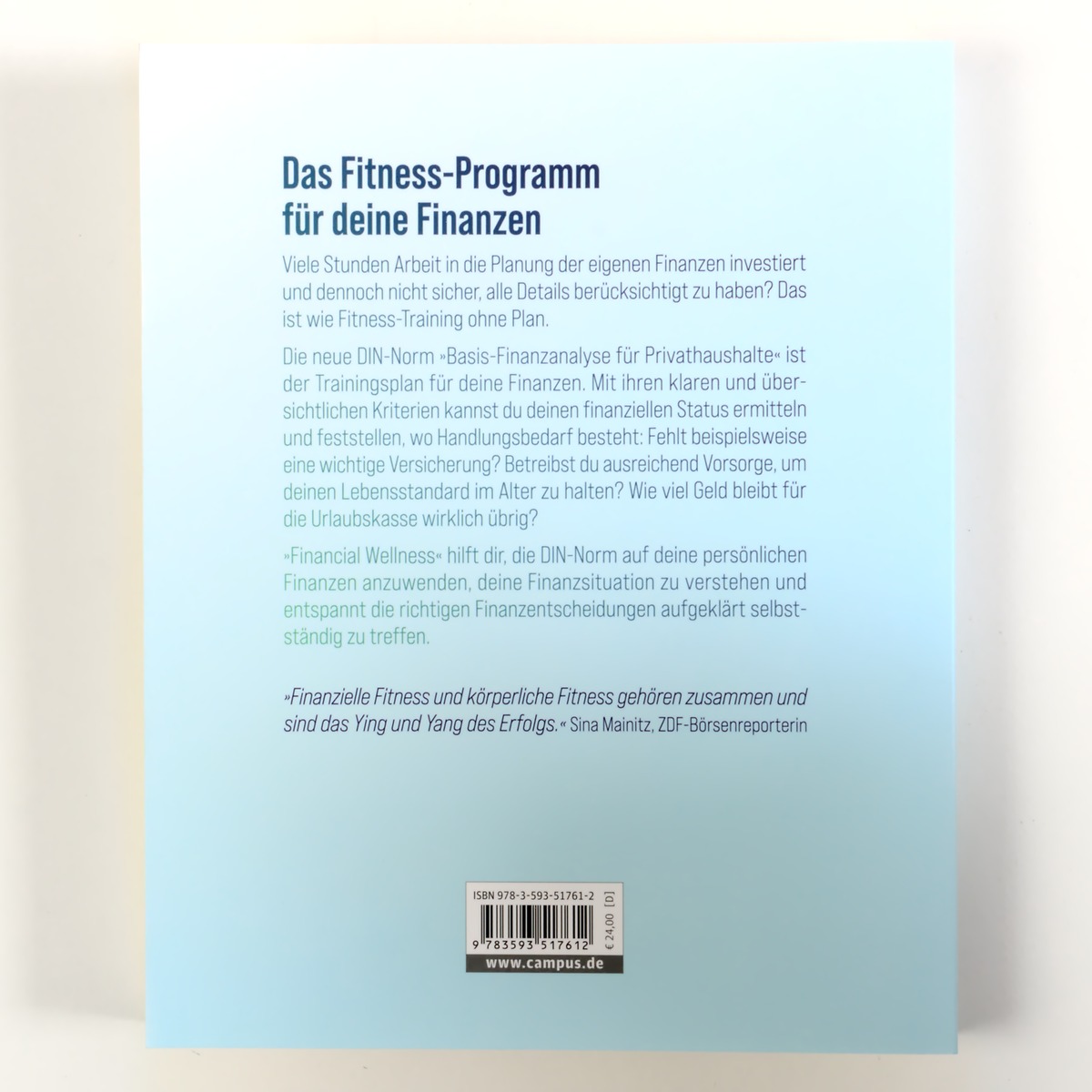 Die eigenen Finanzen geregelt zu bekommen, kann ganz schön komplex werden. Gerne übersieht man Details bei der Fülle an wichtigen Themen. Mit der neu geschaffenen DIN-Norm 77230 »Basis-Finanzanalyse für Privathaushalte« gibt es nun einen objektiven und verbraucherorientierten Baukasten, der alle relevante Punkte klärt. »Financial Wellness« unterstützt bei der Umsetzung der DIN-Norm in die persönliche Finanzplanung: Leserinnen und Leser werden nach einheitlichen Kriterien befähigt, ihre individuelle finanzielle Situation zu verstehen, zu bewerten und daraus die persönlichen Handlungsbedarfe abzuleiten. Nach der Lektüre des Buchs sind sie in der Lage, alle wichtigen Fragen zu beantworten und mündig und aufgeklärt ihre Finanzentscheidungen selbst zu treffen.