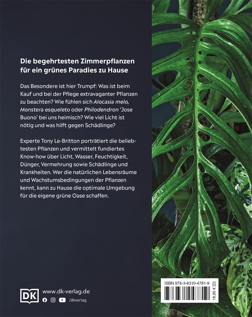 Riesige Blätter, deckenhohe Triebe und besondere Musterungen: Außergewöhnliche Zimmerpflanzen verwandeln jedes Zuhause in eine grüne Oase. Damit der eigene Urban Jungle lange Freude bereitet, braucht es mehr als bewundernde Blicke und ab und zu ein wenig Wasser. Tony Le-Britton ist Experte, wenn es um den Kauf, die Pflege und die Vermehrung exotischer Zimmerpflanzen geht und teilt in diesem Zimmerpflanzenbuch sein Know-how über die besonderen Ansprüche von Monstera, Alocasia, Philodendron und Co.