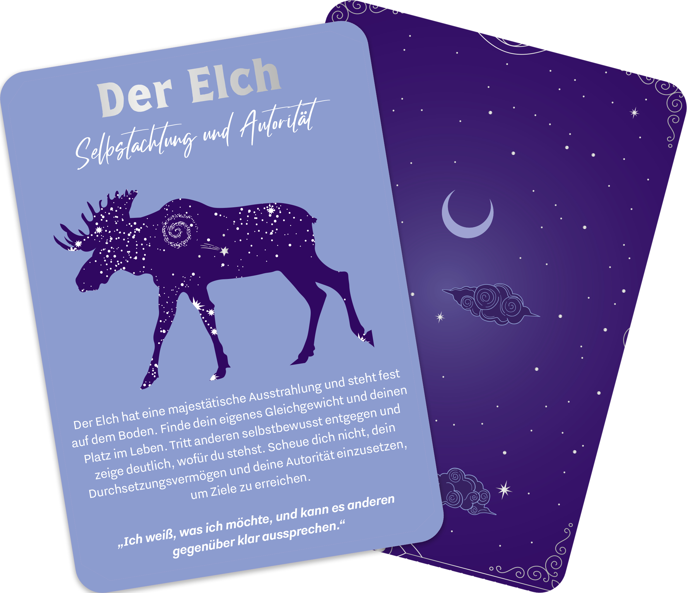 - Stilvoll illustriertes Krafttier-Orakel in einer hochwertigen, mit Silberfolie veredelten Box