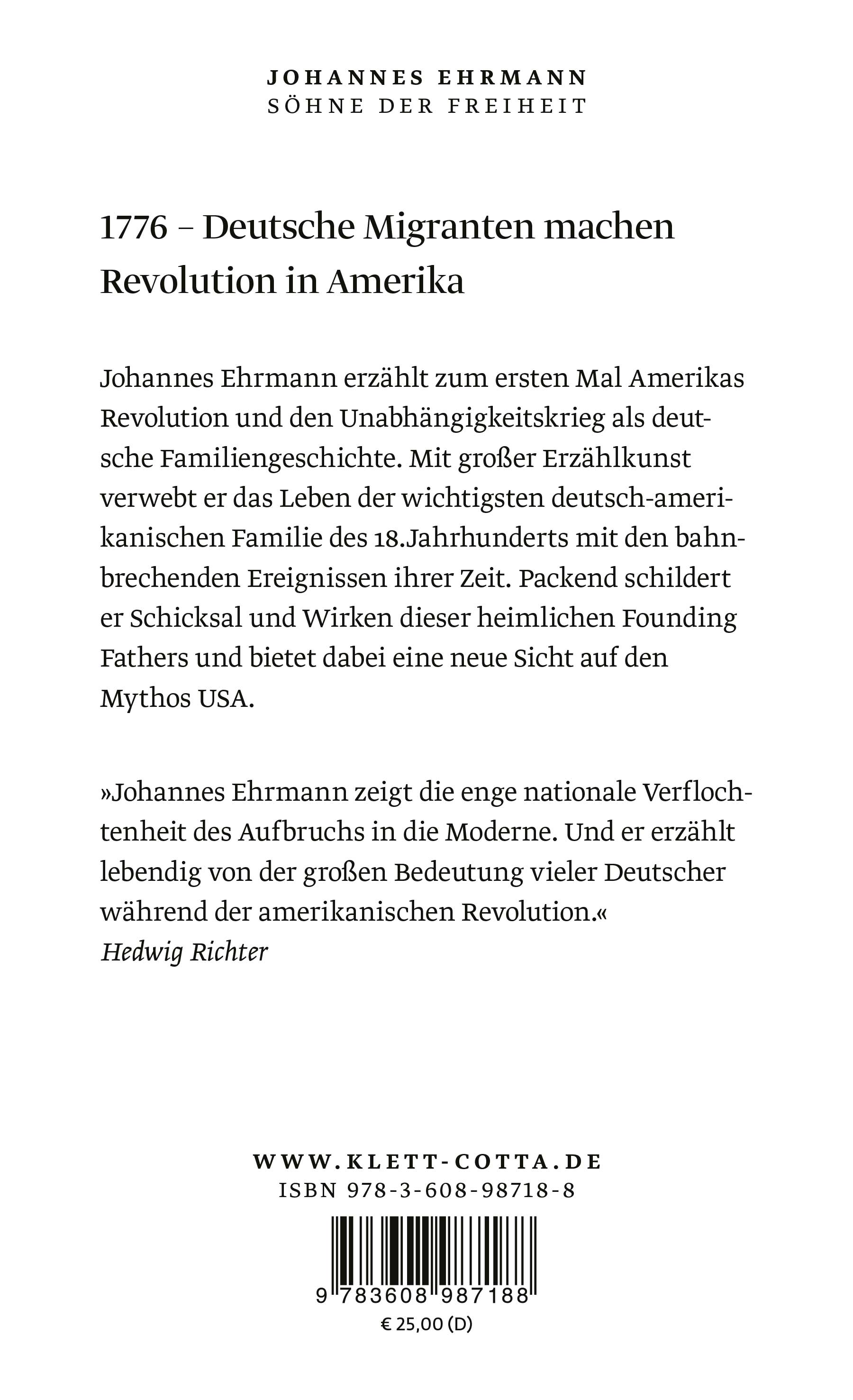 »Johannes Ehrmann zeigt die enge nationale Verflochtenheit des Aufbruchs in die Moderne. Und er erzählt lebendig von der großen Bedeutung vieler Deutscher während der amerikanischen Revolution.« Hedwig Richter