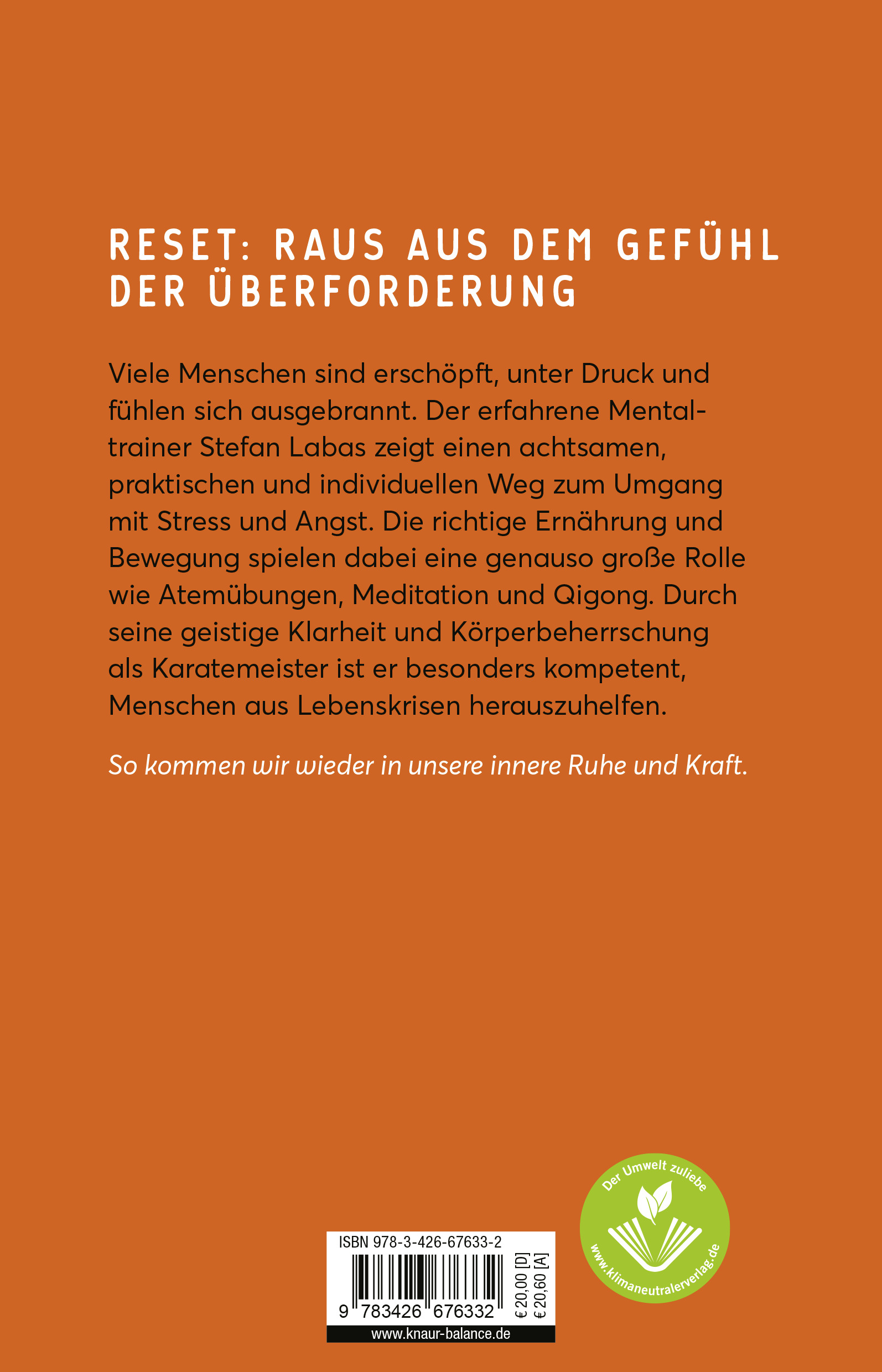 Wie genau so ein Reset - also ein Neustart für Ihren Körper und Geist - funktioniert, erklärt der Experte Stefan Labas in seinem motivierenden Ratgeber. Er erklärt, wo auch außerhalb des Büros Stress-Trigger sitzen können und zeigt einen achtsamen, praktischen sowie individuellen Weg zum Umgang mit Stress und Angst. Die richtige Ernährung und sportliche Betätigung spielen dabei eine ebenso große Rolle wie Atemübungen, Meditation und Qi Gong, weiß der ehemalige Karatemeister Labas.