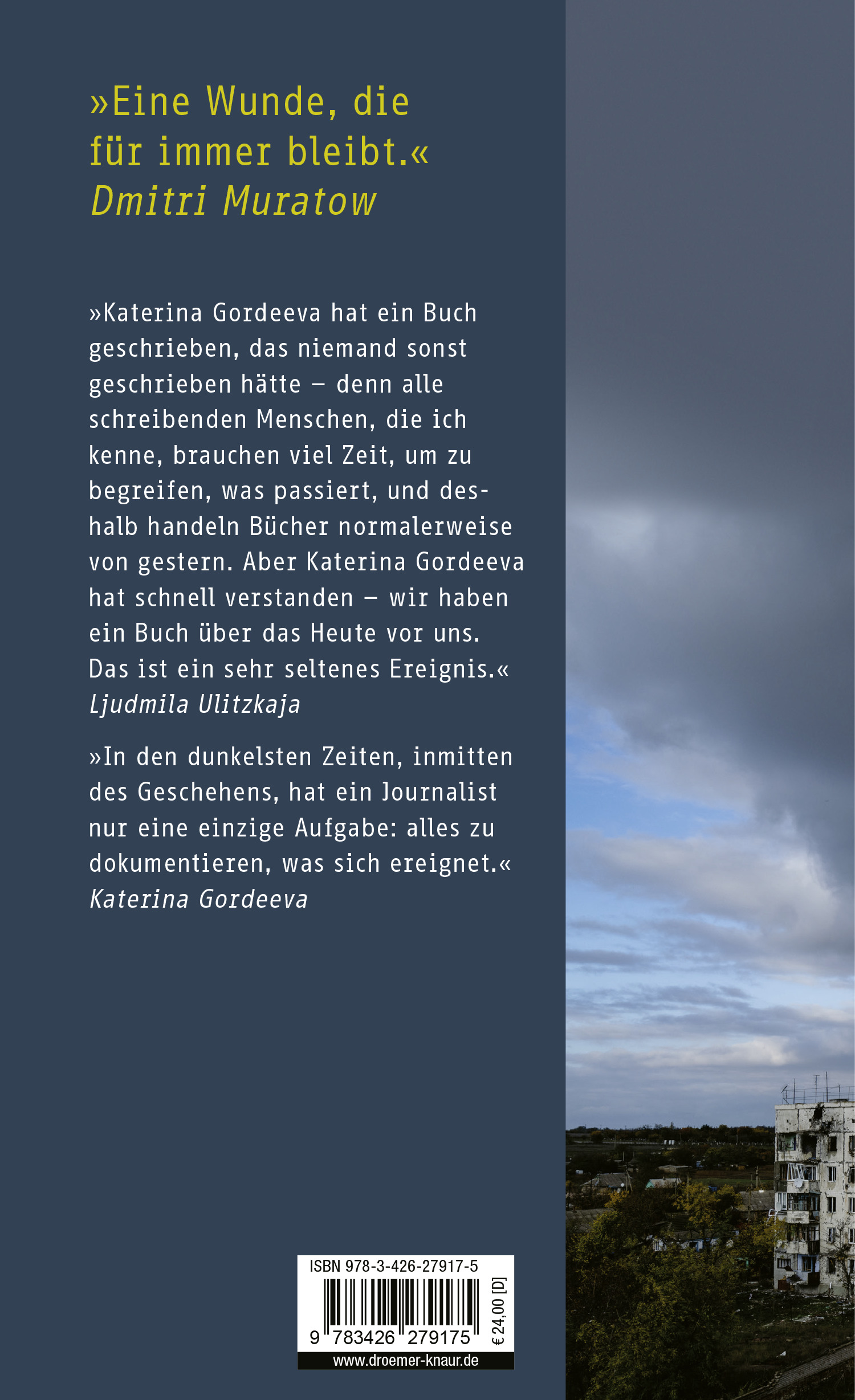 Katerina Gordeevas Buch ist ein brisanter Text, der umfassend das Kriegserleben schildert, sowohl von russischer als auch ukrainischer Seite. Diese Geschichten werden unser Wissen über den Krieg verändern und sind zugleich Zeugnis und Appell für Demokratie, objektiven Journalismus, für Wahrheit und für Frieden.