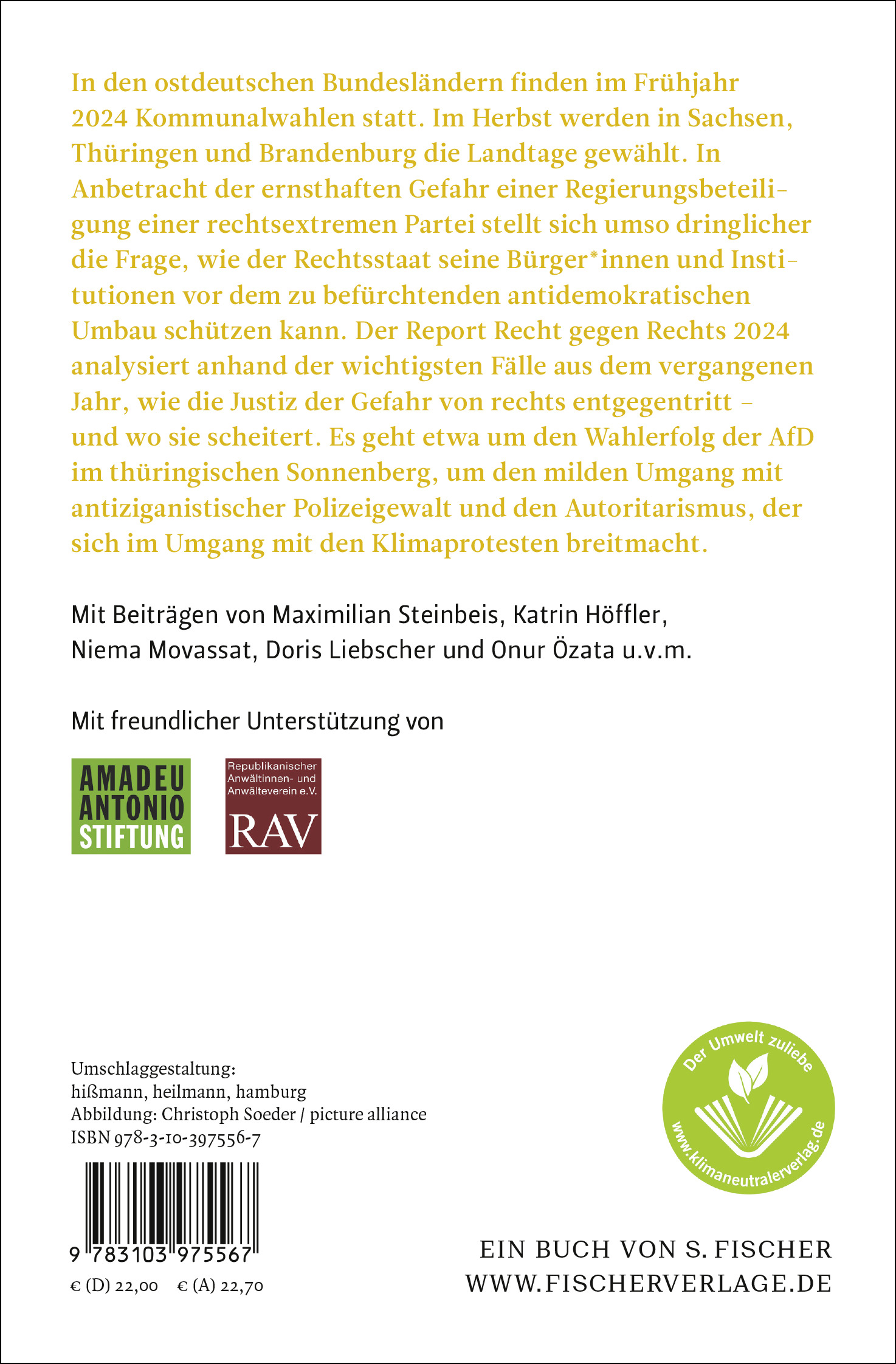 Bereits zum vierten Mal deckt der Report »Recht gegen rechts« rechtsextreme Tendenzen in der Rechtssprechung auf. Wo nutzt die Justiz ihre Instrumente zur Verteidigung von Demokratie und Vielfalt nicht ausreichend? Was tut sie zum Schutz derer, die sich für unsere Zivilgesellschaft engagieren? Mehr als 30 prominente Autor*innen beschreiben die wichtigsten Fälle aus dem vergangenen Jahr. Eine offensive Analyse des Versagens der Justiz und eine kritische Chronik erfolgreicher rechtlicher Gegenstrategien.