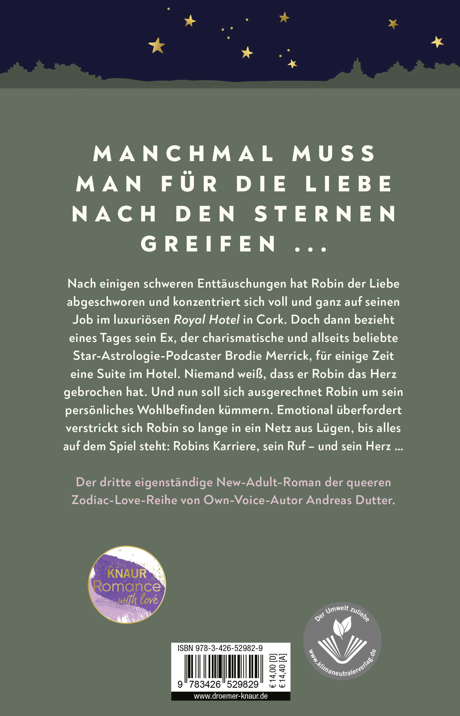 | Schlagworte | Andreas Dutter • Astrologie • Astrologie-Podcast • Astrologie-Seminare • Bisexualität • bisexuelle Hauptfigur • Booktok • Boy meets boy • College Liebe • college liebesromane deutsch • college romance deutsch • College Romane • dark academia • Dark Academia deutsch • Dark Academia Liebesromane • Deutsche Own Voice LGBTQIA+ • Diversity • enemies to lovers • found family • Haters to lovers • Hope in Our Universe • Irland • Irland Roman • knaurromance • Knaur Romance • LGBTQ Bücher • lgbtqia+ • LGBTQIA Bücher • LGBTQIAP+ • LGBTQ Romane • Liebesgeschichten • Liebesgeschichten Bücher • Liebesromane College • Liebesromane Reihe • liebesroman new adult • New Adult • New Adult Buch • new adult bücher • new adult liebesroman deutsch • New Adult queer • new adult romane • New Romance Buch • Podcast • Queer • queere bücher • Queere Liebesgeschichte • queere Romane • queer romance • Romane Irland • Romane LGBT • Romane Liebe • romantische romane • Second Chance • Skorpion • Starlight in Our Dreams • Sternzeichen • TikTok-Trend • unglückliche Liebe • Zodiac Love 3 • Zweite Chance • Zwilling |