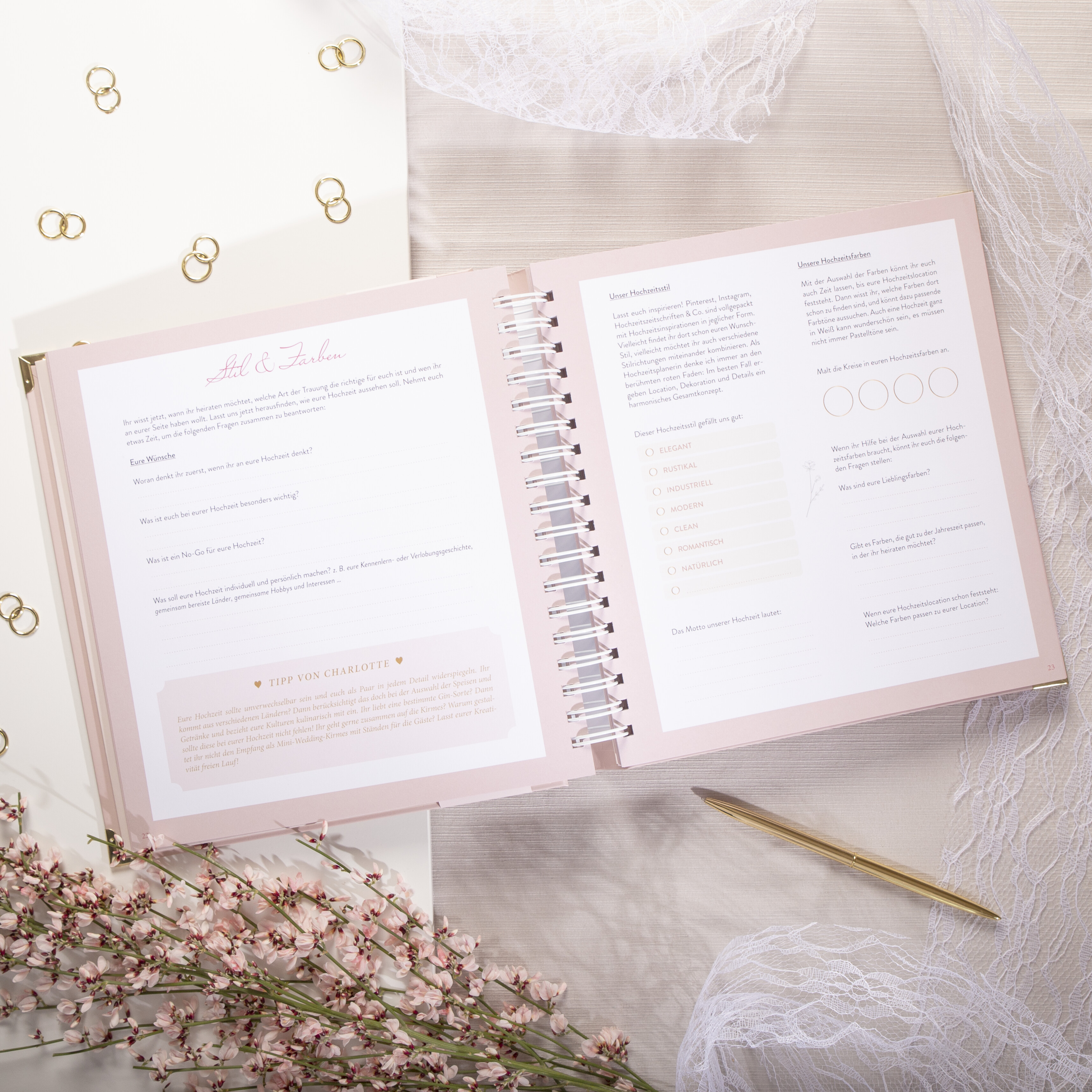 - Umfangreiches Wissen aus der Praxis von der erfahrenen Hochzeitsplanerin Charlotte Brom