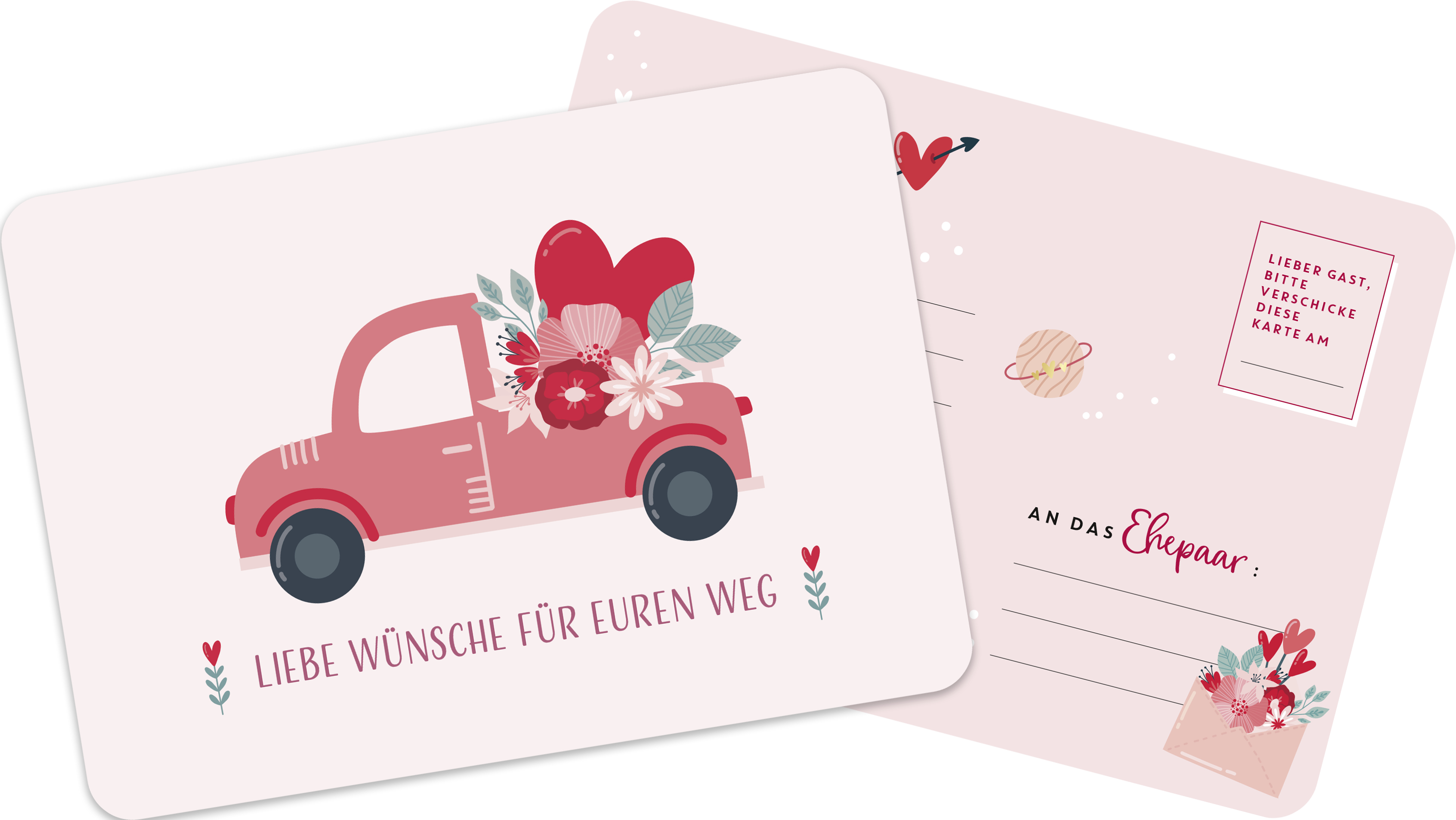 - 52 Postkarten zum Ausfüllen und Verschicken an das Brautpaar