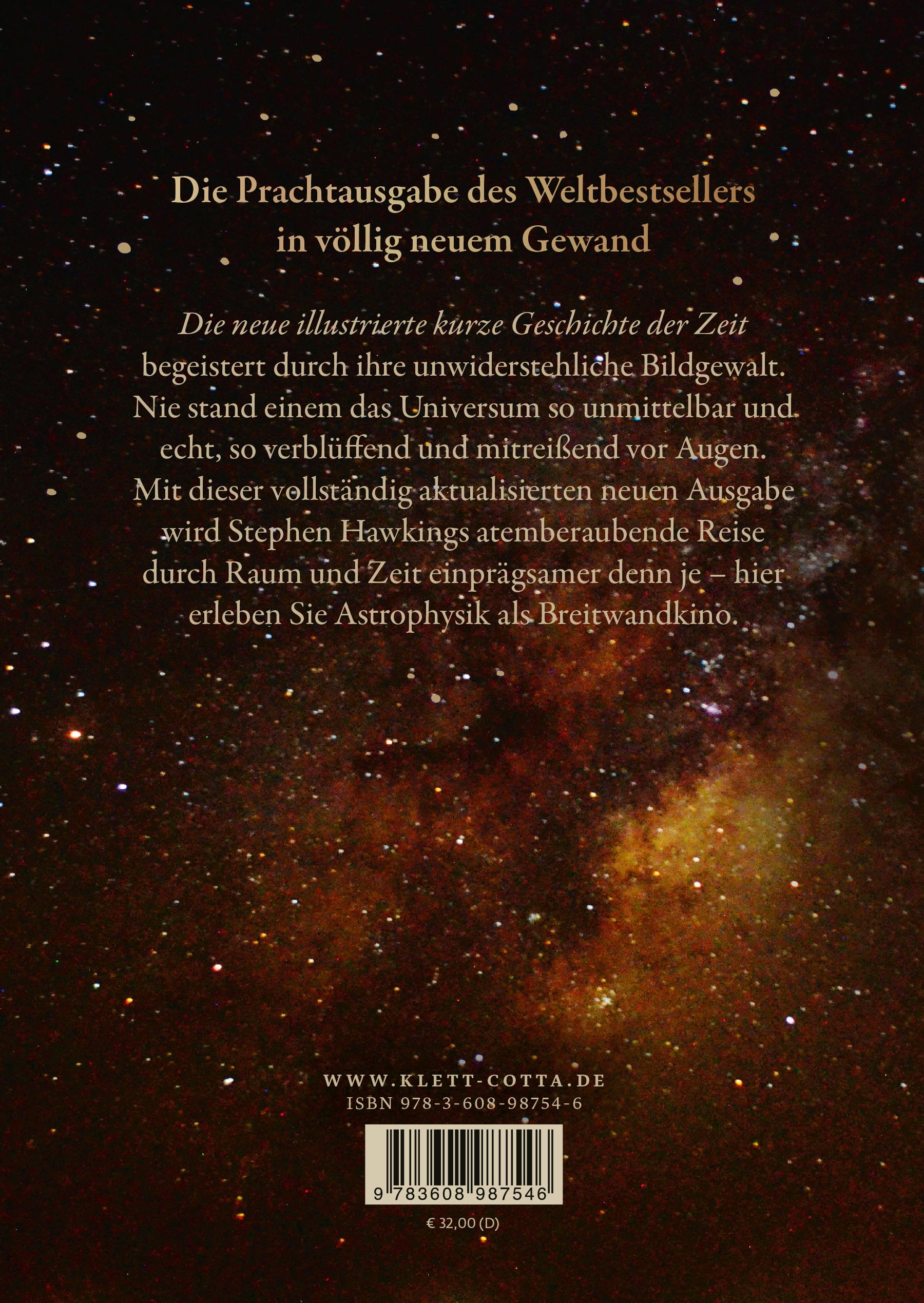 Wenn wir nachts den Sternenhimmel beobachten, tun wir etwas, was die Menschheit von Anfang an erstaunt und begeistert hat. Nachgelassen hat diese Faszination nie. Niemand dürfte unser Wissen über das Weltall, die Schwerkraft und über Raum und Zeit so umfassend erweitert, so sehr vertieft haben wie Stephen Hawking. Sein ganzes Leben war er auf der Suche danach, das Rätsel des Universums zu lösen: Dieses Geheimnis aufzuheben, gelingt ihm mit seinem epochemachenden Buch "Eine kurze Geschichte der Zeit". Das weltweit bestverkaufteste Sachbuch der letzten Jahrzehnte macht anspruchsvolle physikalische und astronomische Zusammenhänge anschaulich und eröffnet ein völlig neues Verständnis unseres Universums. Er reist mit uns an den Rand des Kosmos, in die unendlichen Weiten, an die Ereignishorizonte der Schwarzen Löcher und darüber hinaus in das immer weiter expandierende Weltall - ein einmaliges, ein unvergessliches Leseerlebnis.