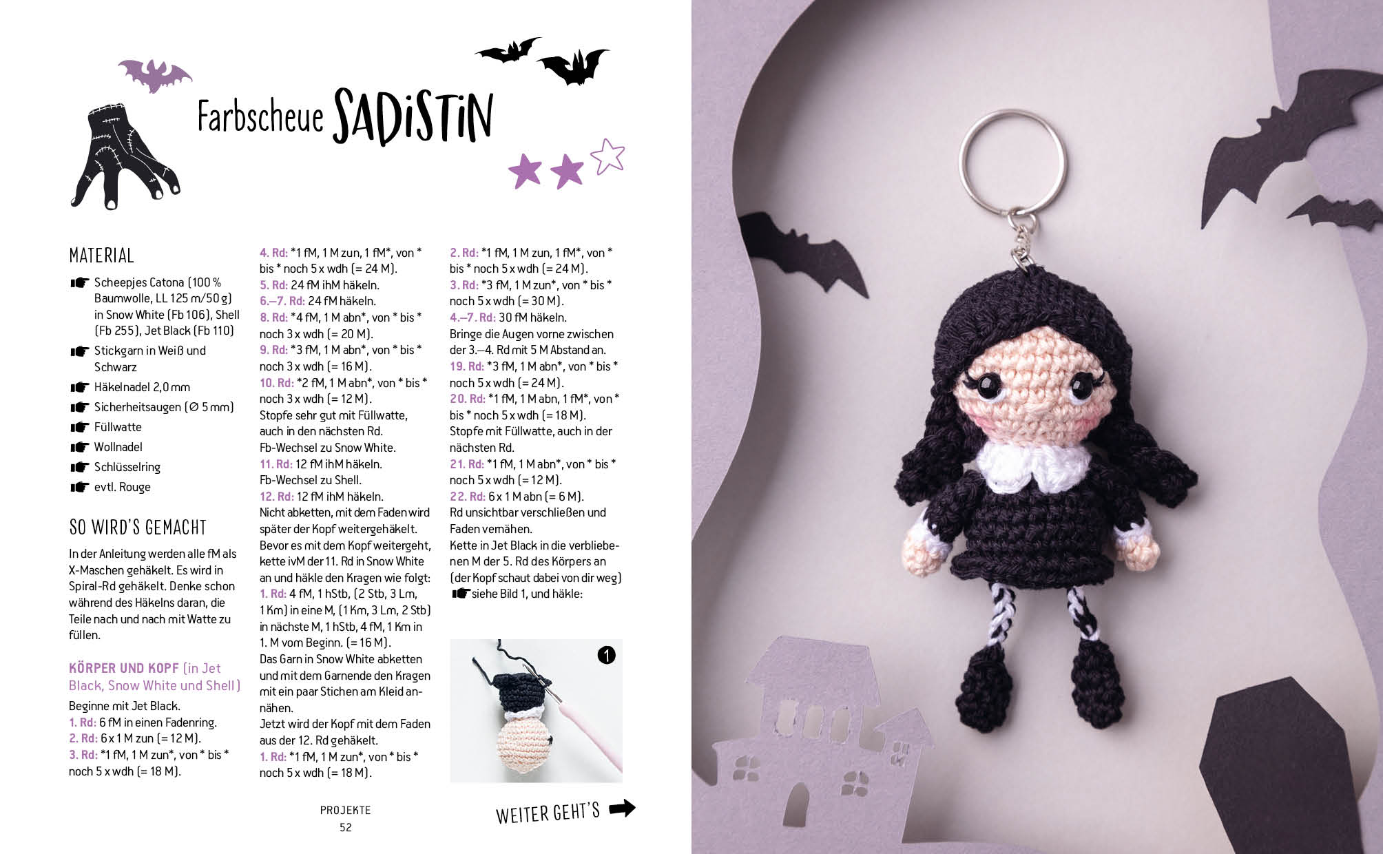 Schnapp dir deine Häkelnadel und häkle dir in Nullkommanichts einen kleinen Begleiter für deinen Schlüsselbund. Die liebsten Held*innen aus Film, Fernsehen und Büchern, die Groß und Klein damals sowie heute begeistern, lassen sich mit ihrer niedlichen Größe von maximal 7 cm super schnell häkeln. Die kleinen Figürchen eignen sich wundervoll als Anfängerprojekte und sind das perfekte Geschenk für Freunde, die eigenen Kinder oder sich selbst. Ergänzt um einen Schlüsselring ist dein kleiner Begleiter bereit, um an Taschen, Schlüsselringen oder Federmäppchen gehängt zu werden.