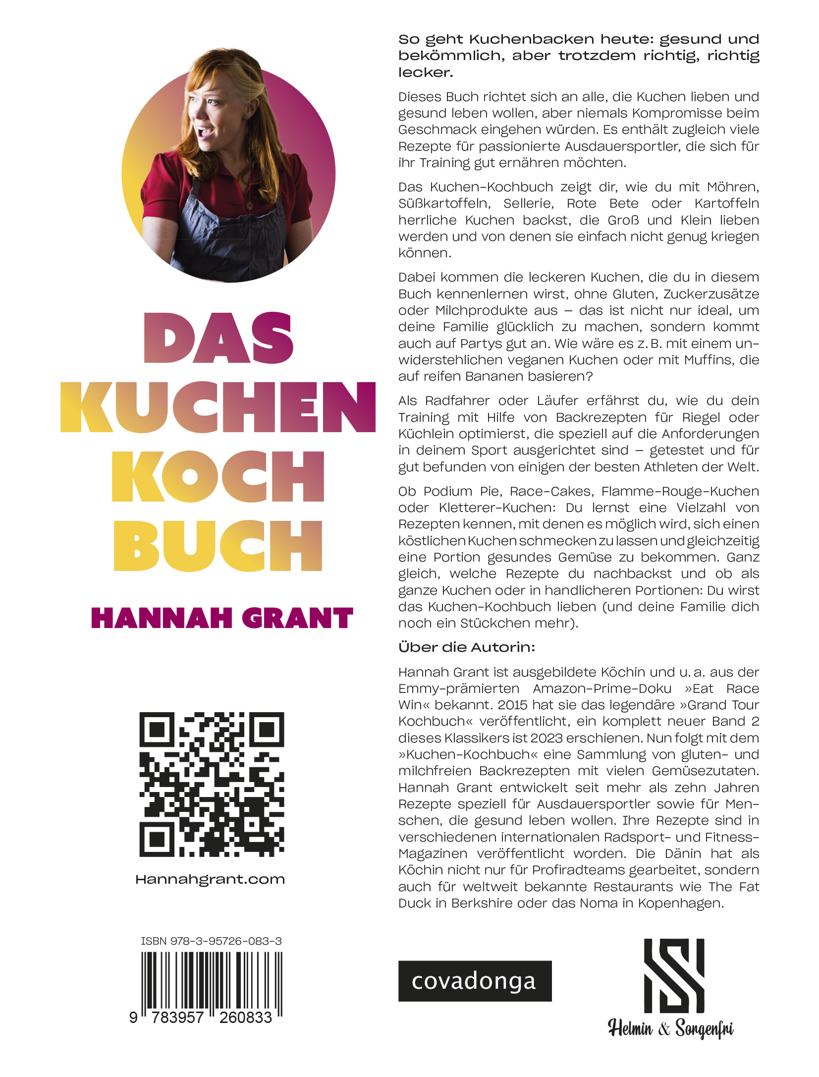 Hannah Grant kann als erfahrene Profiköchin auf 16 Grand Tours zurückblicken und hat ebenso in weltberühmten Restaurants wie Noma und The Fat Duck gekocht wie für einige der weltbesten Radsportteams. Manche kennen sie durch die Serie »Eat! Race! Win!« (Amazon Prime). Hannah Grant arbeitet seit 2011 als Köchin und entwickelt bis heute immer wieder leicht nachzumachende und schmackhafte Rezepte für Radprofis, Hobbysportler und ihre Familien. Zuletzt erschien von ihr »Das neue Grand Tour Kochbuch 2.0« (Juni 2023), ebenfalls bei Covadonga.