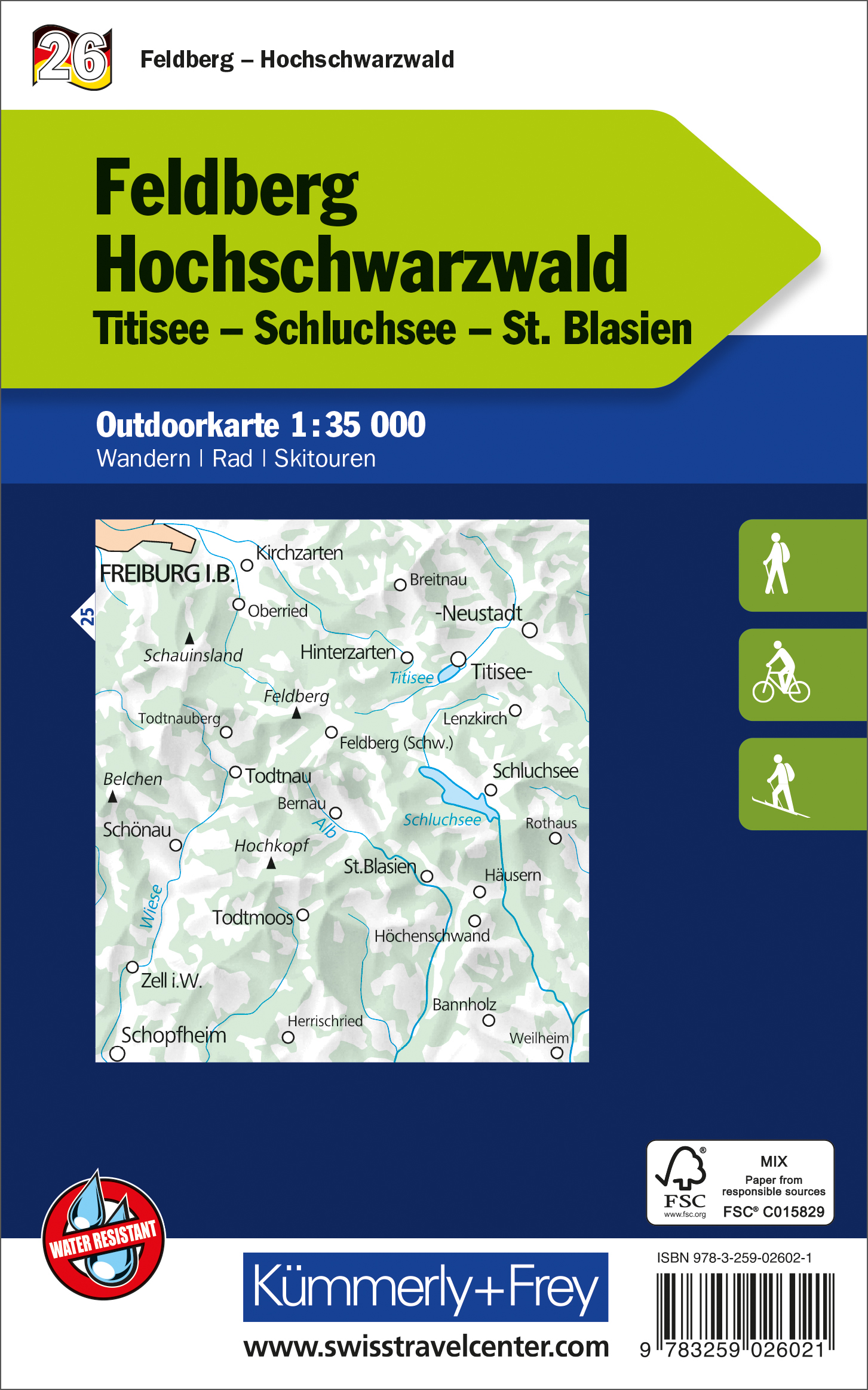 In der Kümmerly+Frey Outdoorkarte Feldberg Hochschwarzwald, Titisee - Schluchsee - St. Blasien im Massstab 1:35'000 finden Sie die besten Routen für ganz unterschiedliche Sportarten.