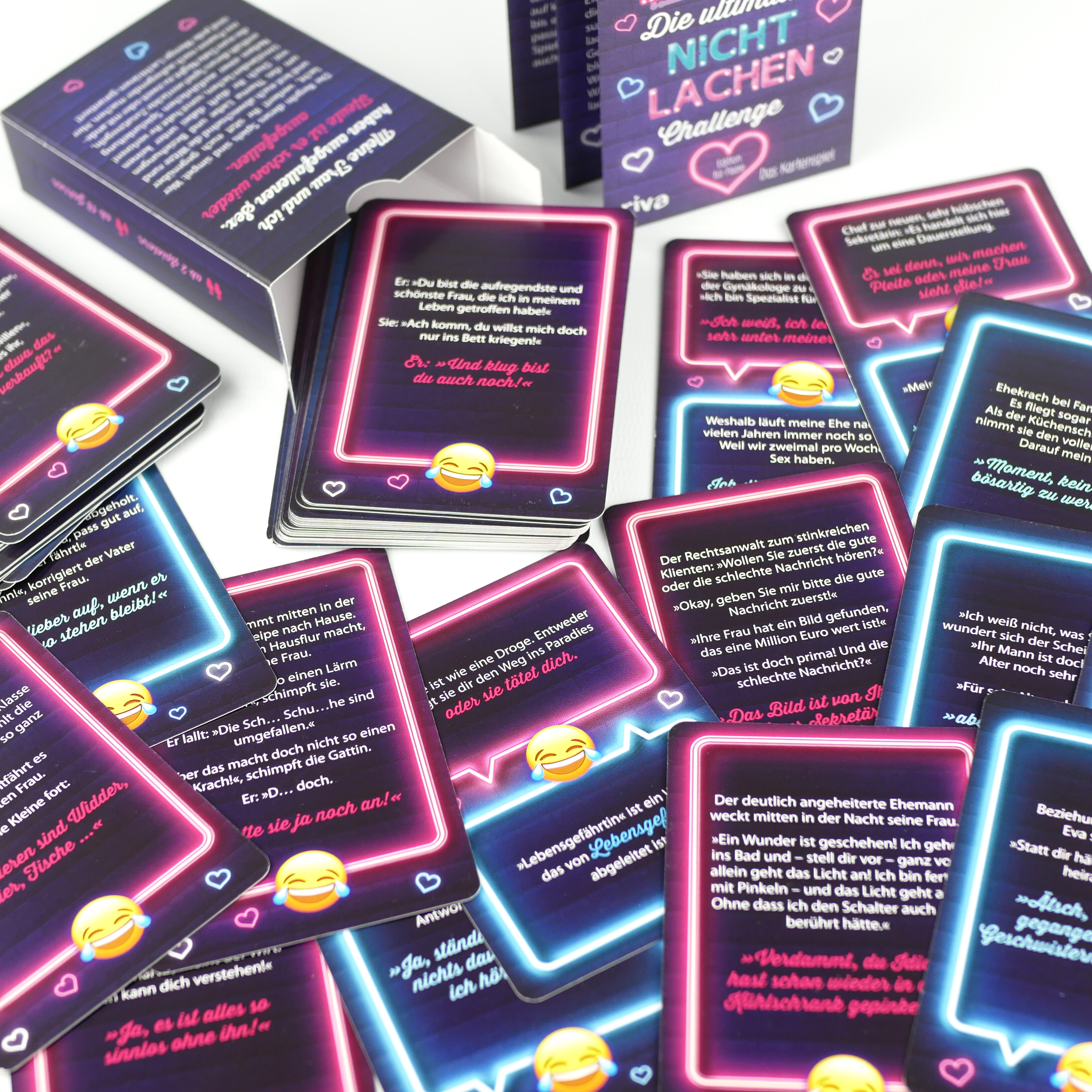 | Schlagworte | challenge • Date • Flachwitz • Geburtstag • Geschenk • Humor • Karten • Kartenspiel • Kennenlernen • Lachen • Last one laughing • lol • lustig • Paar • Partner • Party • Spaß • Spiel • Trinkspiel • Unterhaltung • Valentinstag • Weihnachten • witzig • zu verschenken |