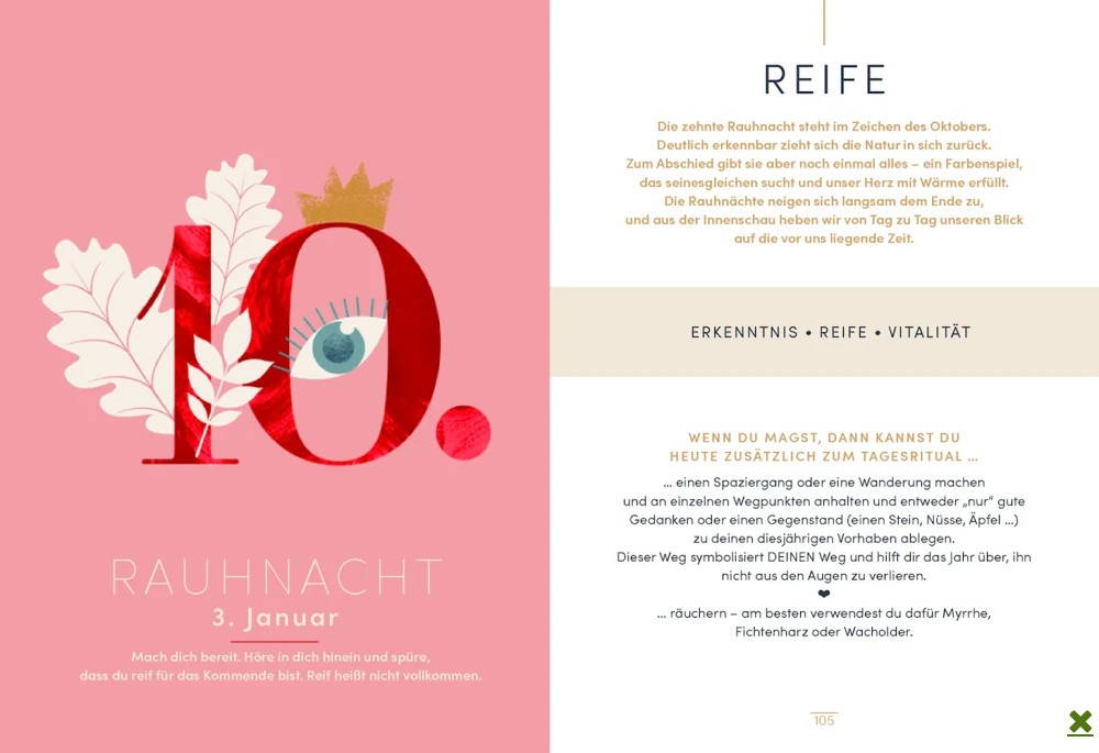 Kurz und kompakt und trotzdem mit Tiefgang leitet das Buch durch alle zwölf Tage und Themenbereiche der Rauhnächte. Nach einem kurzen Überblick über die Traditionen und Ursprünge der Rauhnächte sowie Tipps und Tricks zur Vorbereitung der stillen Zeit geht es direkt los. Jede Rauhnacht steht unter einem bestimmten Motto und beginnt mit einer inspirierenden Geschichte. Anschließend werden, passend zum Tagesmotto, ein Tagesritual, aber auch weitere Ideen des Innehaltens und Klarheit-Schaffens vorgestellt. Außerdem helfen praktische Coaching-Tipps, sich mehr Zeit für sich selbst zu nehmen und die Erkenntnisse im Alltag anzuwenden.