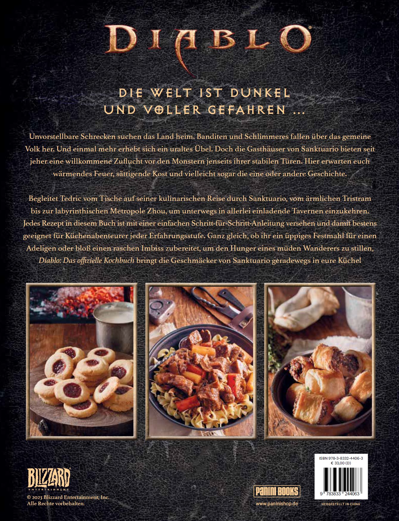 Im Juni veröffentlichte die Spieleschmiede Blizzard Entertainment mit DIABLO 4 endlich das langersehnte Sequel zu einem der erfolgreichsten Videogame-Franchises der Welt. Mit Diablo: Das offizielle Kochbuch wird dieser Release nun zusätzlich mit einer überaus leckeren Rezeptsammlung zur ikonischen Spielserie gewürzt.Über 60 einzigartige kulinarische Köstlichkeiten aus der fantastischen Welt des populären Action-Adventures warten auf die darbende Fangemeinde. Vom bescheidenen Dorf Tristram bis hin zum majestätischen Berg Arreat, von den brennenden Höllen bis zu den Hohen Himmeln ... Diablo: Das offizielle Kochbuch bietet für jeden Geschmack das richtige: von teuflisch lecker bis überirdisch traumhaft - aber immer bodenständig simpel zum Nachkochen.