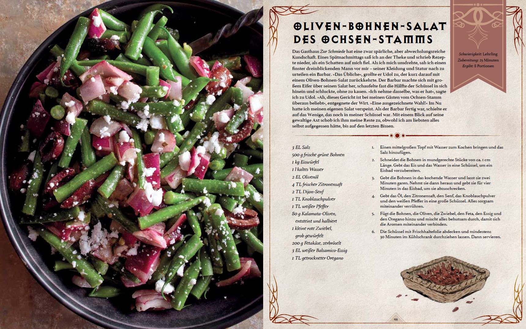 DIE WELT IST DUNKEL UND VOLLER GEFAHREN ... Unvorstellbare Schrecken suchen das Land heim. Banditen und Schlimmeres fallen über das gemeine Volk her. Und einmal mehr erhebt sich ein uraltes Übel. Doch die Gasthäuser von Sanktuario bieten seit jeher eine willkommene Zuflucht vor den Monstern jenseits ihrer stabilen Türen. Hier erwarten euch wärmendes Feuer, sättigende Kost und vielleicht sogar die eine oder andere Geschichte. Begleitet Tedric vom Tische auf seiner kulinarischen Reise durch Sanktuario, vom ärmlichen Tristram bis zur labyrinthischen Metropole Zhou, um unterwegs in allerlei einladende Tavernen einzukehren. Jedes Rezept in diesem Buch ist mit einer einfachen Schritt-für-Schritt-Anleitung versehen und damit bestens geeignet für Küchenabenteurer jeder Erfahrungsstufe. Ganz gleich, ob ihr ein üppiges Festmahl für einen Adeligen oder bloß einen raschen Imbiss zubereitet, um den Hunger eines müden Wanderers zu stillen, Diablo: Das offizielle Kochbuch bringt die Geschmäcker von Sanktuario geradewegs in eure Küche!
