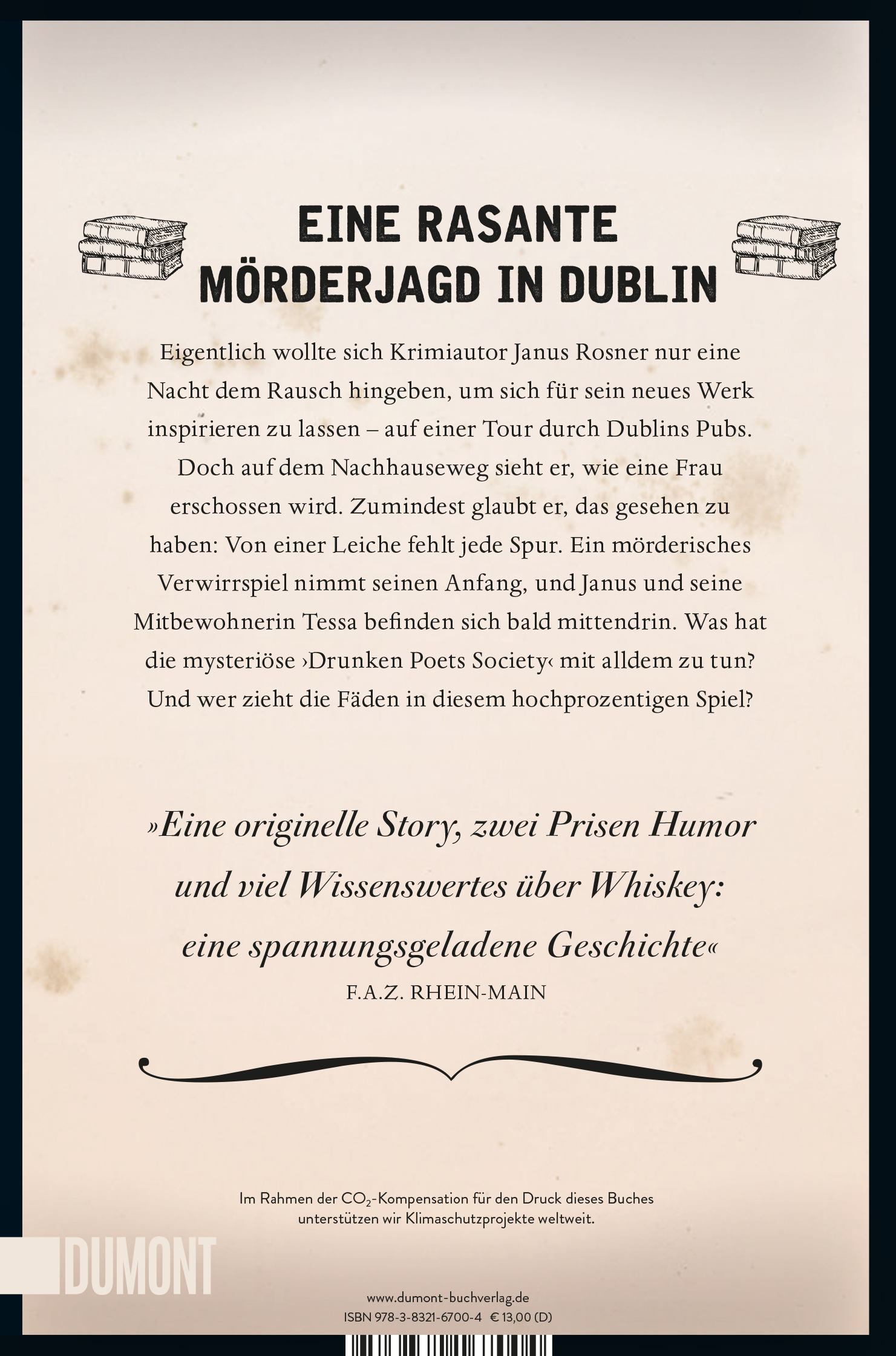 »Augenzwinkernd und kenntnisreich erzählt Henn in seinem neuen Krimi von Dublin, der Stadt der trinkenden Dichter und dichtenden Trinker.« KÖLNER STADT-ANZEIGER »Ein rasanter Kriminalfall, der bis in die dunkelsten Ecken der Insel-Metropole führt.« KÖLNER STADT-ANZEIGER »Carsten Sebastian Henn gelingt es in seinem dritten Kriminalroman rund um Hochprozentiges erneut, eine originelle Geschichte, zwei Prisen Humor und viel Wissenswertes über die Hauptzutat seines Kriminalromans - den Whiskey - zu einer spannungsgeladenen Geschichte zu verknüpfen.« Barbara Hoppe, FAZ RHEIN-MAIN »Die etwas schräge Handlung, gut gezeichnete Charaktere sowie viel Wissenswertes um das irische Lebenswasser sorgen für Spaß und Spannung.« Heinz Storrer, SCHWEIZER FAMILIE »Du magst die Figuren einfach sofort. [...] Schön spannend.« Matz Kastning, SCHUSS VORM BUCH »Henn konstruiert sehr geschickt literarische Zitate und die Morde zu einem Spannungsbogen.« Martin G. Wanko, VORARLBERGER ZEITUNG