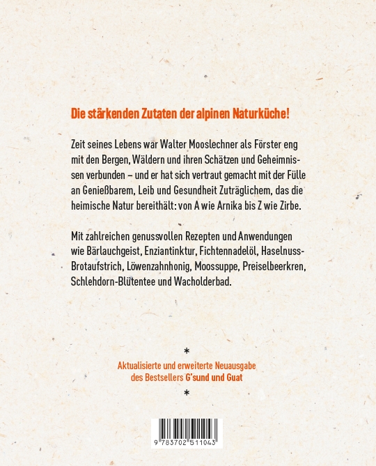 So stehen die heilkräftigen Pflanzen unserer Gebirgswelt, die Leib und Seele genussvoll zusammenhalten, im Mittelpunkt dieses grundlegend überarbeiteten und erweiterten Klassikers G'sund und Guat von Walter Mooslechner.