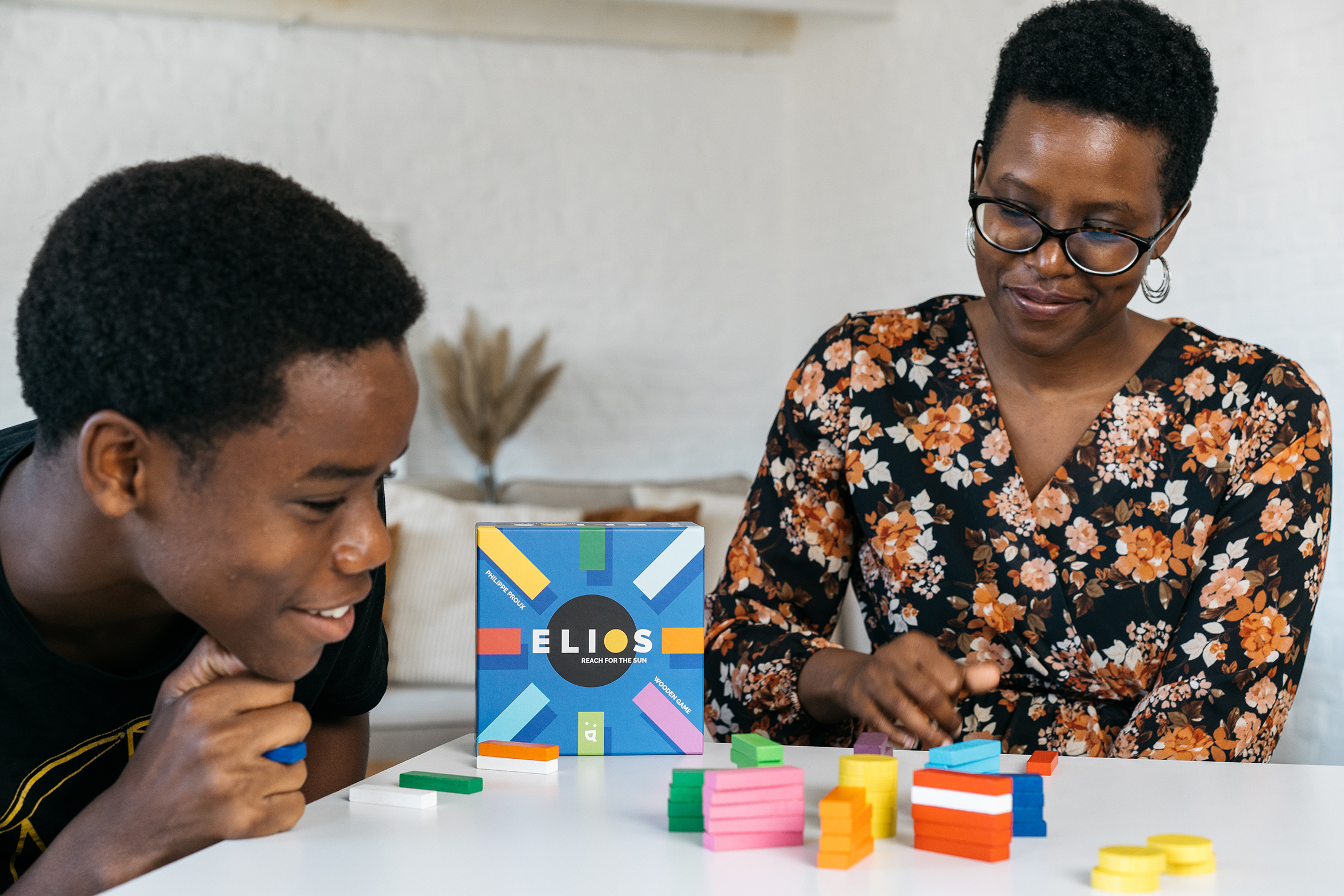 Elios ist ein abstraktes Spiel, das euch die Sonne mit bunten Strahlen aus Holz verschönern lässt. Euer Ziel ist es, als Erste oder Erster eure Strahlen um die Sonne anzuordnen.Beginnt damit, Sets aus 1, 2 oder 3 Strahlen zu bilden. Danach könnt ihr reihum jeweils eine der folgenden drei Aktionen durchführen: ein Strahlenset um die Sonne anordnen (mit gewissen Einschränkungen), eine Holzscheibe ins Zentrum der Sonne legen oder ein Strahlenset in zwei zu teilen. In Elios müsst ihr Voraussicht beweisen und gleichzeitig aber auch auf die Züge der anderen Spieler eingehen können.