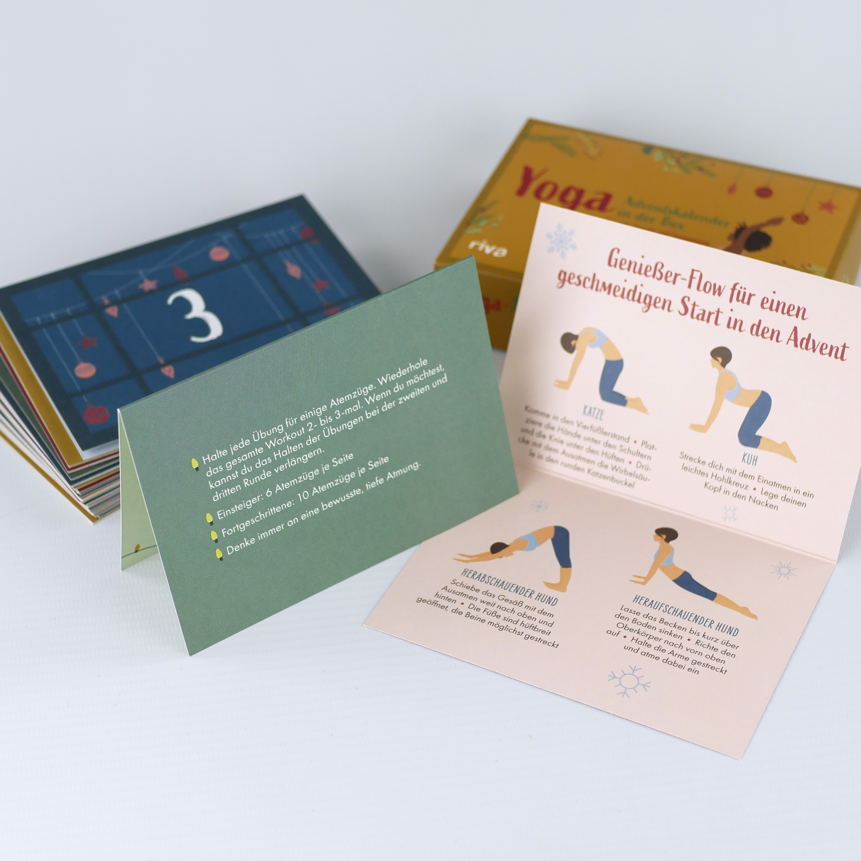 Yoga sorgt nicht nur für innere Ruhe, sondern verhilft auch zu mehr Energie perfekt also, wenn du dem dunklen und oftmals stressigen Dezember für einen Moment entfliehen möchtest. Jede der 24 modern und liebevoll gestalteten Faltkarten hält eine Minisequenz bereit, die dich durch den Advent begleitet.