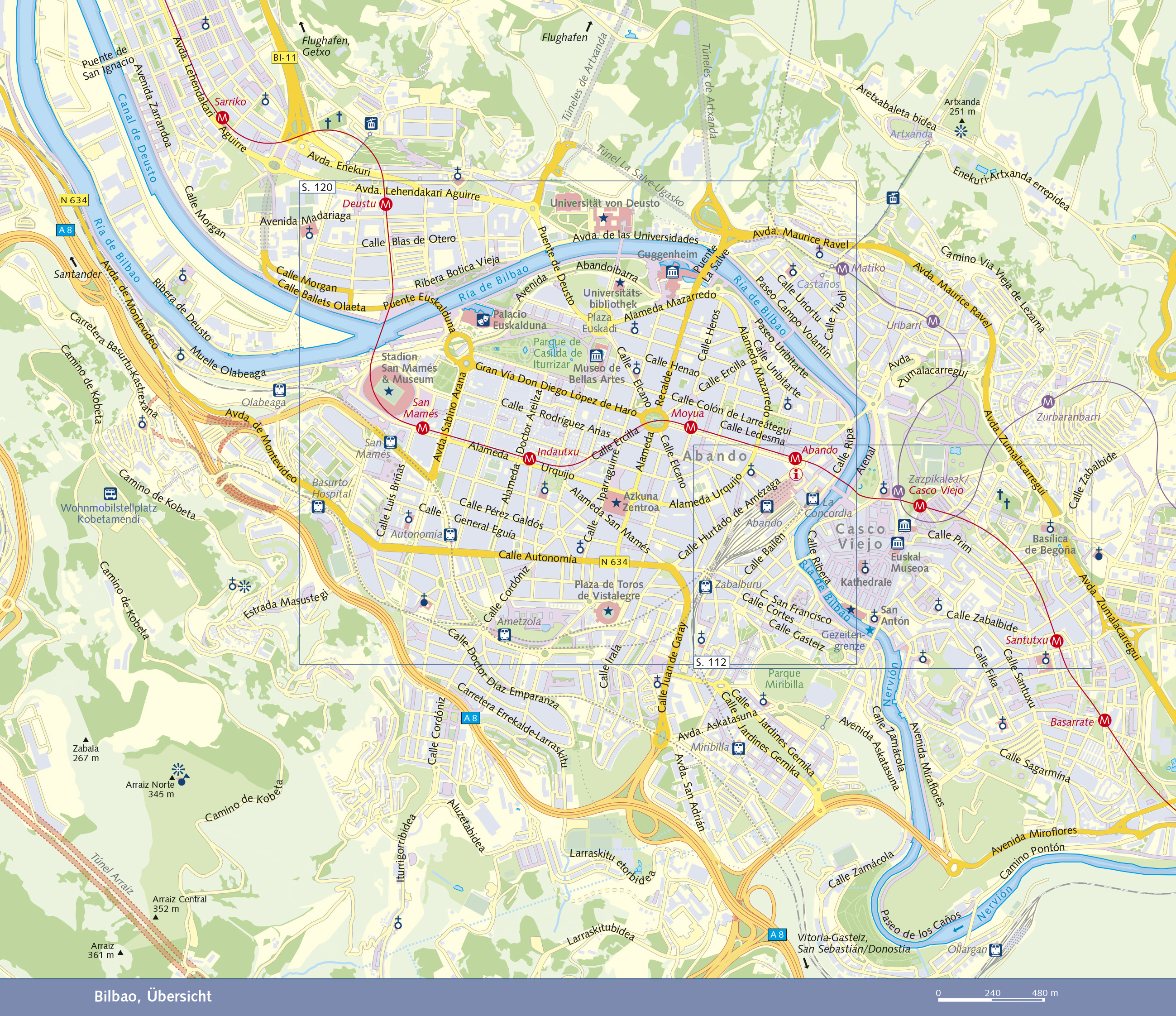 Vorwort 11Reisehöhepunkte 12Das Wichtigste in Kürze 14Über diesen Reiseführer 16LAND UND LEUTE 19Zahlen und Fakten 20Geografie und Bevölkerung 21Die Basken 21Landschaftliche Vielfalt 23Regionale Gliederung 25Klima 26Vegetation 28Tierwelt 30Geschichte 32Frühgeschichte 32Die Römerzeit 34Christianisierung 37Die Visigoten 38Die maurische Eroberung 38Im Spannungsfeld der "Reconquista" 39Die spanische Expansion 40Die Neuzeit 43Die Napoleonischen Kriege 45Das 19. Jahrhundert 46Die Industrialisierung 47Der baskische Nationalismus 50Die Diktatur unter Primo de Rivera 52Die Zweite Republik 52Der Spanische Bürgerkrieg 54Die Franco-Diktatur 56Die ETA bis 1975 58Der Übergang zur Demokratie 60Die 1980er Jahre 64Der Plan Ibarretxe 67Die Auflösung der ETA 68Die Normalisierung 70Kunst und Kultur 71Euskera - die einzigartige baskische Sprache 71Die baskische Mythologie 76Architektur 77Kunstgeschichte 82Musik 85Literatur 88Film 90Nationale Sportarten 92Internationale Sportarten 95Baskische Küche 97Gastronomische Gemeinschaften 97Sterneküche 98Pintxos 99Getränke 102BILBAO _UND DIE PROVINZ BIZKAIA 105Die Provinz Bizkaia 106Bilbao - der Phoenix aus der Asche 107Stadtgeschichte 108Unterwegs in Bilbao 110Casco Viejo - die Altstadt 111San Francisco 117Abando 118Abandoibarra und Guggenheim Bilbao 125Vom Guggenheim-Museum flussabwärts 130Portugalete 137Las Encartaciones - Enkarterri 141Gallarta und Umgebung 141Balmaseda 143Cueva de Pozalagua 144Östlich von Bilbao 147Getxo 147Gaztelugatxe 151Bermeo 152Mundaka 155Gernika 157Rund um Gernika 160Lekeitio 163Ziortza-Bolibar 165Durango 166Naturpark Urkiola 168VITORIA-GASTEIZ UND DIE PROVINZ ARABA 171Die Provinz Araba - Álava 172Vitoria-Gasteiz und Umgebung 173Orientierung 175Die Kernstadt 176Westlich von Vitoria 181Östlich von Vitoria 186Südlich von Vitoria 188La Rioja Alavesa 190Bodegas Baigorri 191Laguardia 191La Chabola de la Hechicera 195Elciego/Eltziego 195Puente romano de Mantible 197SAN _SEBASTIÁN UND _GIPUZKOA 201Die Provinz Gipuzkoa 202Donostia - San Sebastián 203Unterwegs in San Sebastián 205Die Altstadt 208El Ensanche 211La Concha 213Gros und Egia 215Chillida-Leku-Museum 218Astigarraga 219Die Küste westlich von San Sebastián 222Zarautz 222Getaria 225Zumaia 229Geoparque de la Costa Vasca 229Der Südwesten der Provinz Gipuzkoa 233Eibar 233Santuario de Loiola 235Azpeitia 236Bergara 240Zumarraga und Urretxu 240Arrasate - Mondragón 244Oñati 245Santuario de Arantzazu 247Tolosa 248Östlich von San Sebastián 251Pasaia 251Irun 253Hondarribia 255PAMPLONA _UND DIE PROVINZ _NAVARRA 261Die Provinz Navarra 262Gastronomie 263Navarra und das Baskenland 264Pamplona - Iruña 266Geschichte 266Pamplona heute 266Stadtzentrum 267Südlich von Pamplona 280Olite/Erriberri 280Puente la Reina/Gares 283Estella-Lizarra 284Parque Natural Urbasa Andía 289Nördlich von Pamplona 291Santuario de San Miguel de Aralar 292Lesaka 292Etxalar 293Zugarramurdi 294Cuevas de Urdazubi-Urdax 299Entlang der Pyrenäen 299Roncesvalles/Orreaga 301Selva de Irati/Iratiko Oihana 305IPARRALDE - DAS FRANZÖSISCHE BASKENLAND 311Die Küste zwischen Hendaia und Bayonne 312Hendaye 314Saint-Jean-de-Luz und Ziburu/Ciboure 318Biarritz 320Bayonne 324Das Hinterland 329Ascain 329Le Train de La Rhune 330