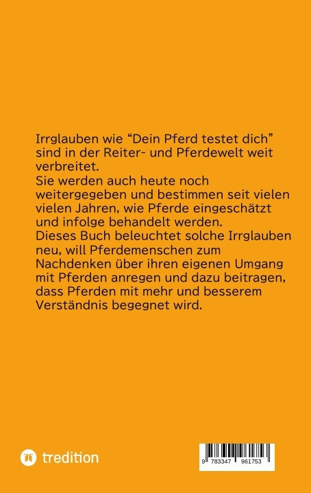 Dieses Buch beleuchtet Irrglauben und Mythen über Pferde, ihr Verhalten und den Umgang mit ihnen neu und soll den Menschen zum genaueren Hinsehen, zum Reflektieren und zum Hinterfragen anregen.