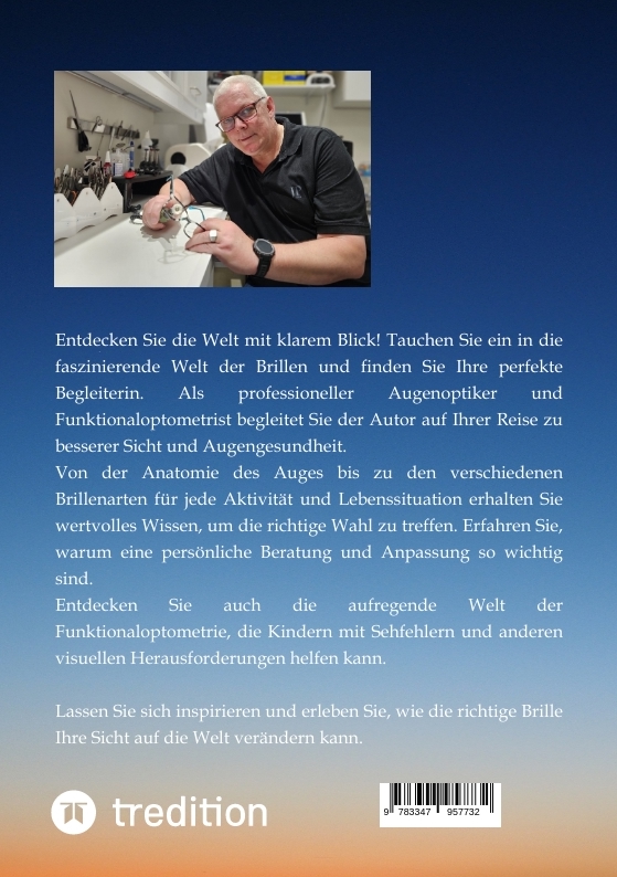 Dietmar Böhm ist ein renommierter Augenoptiker, Funktionaloptometrist, Fachtrainer und Autor, der sein umfangreiches Wissen und seine langjährige Erfahrung in der Augenoptikbranche in zahlreichen Projekten und Veröffentlichungen eindrucksvoll unter Beweis gestellt hat. Als selbstständiger Augenoptiker hat Dietmar Böhm eine Vielzahl von Kunden betreut und ihnen maßgeschneiderte Lösungen für ihre Sehbedürfnisse geboten. Seine fundierte Ausbildung und sein umfassendes Fachwissen ermöglichen es ihm, eine genaue Diagnose zu stellen und die bestmögliche Sehhilfe für jeden individuellen Fall zu empfehlen. Sein ganzheitlicher Ansatz zur Sehversorgung berücksichtigt nicht nur die Sehstärke, sondern auch die Zusammenarbeit beider Augen, die Augenmotorik und andere visuelle Faktoren. Als anerkannter Fachtrainer hat Dietmar Böhm sein Wissen und seine Fähigkeiten in vielen Kursen in Österreich (Wien) und Deutschland weitergegeben. Neben seiner Arbeit als Augenoptiker und Fachtrainer hat Dietmar Böhm nun sein Expertenwissen in Buchform gebracht. Als Autor des bahnbrechenden Brillenkaufratgebers setzt er neue Maßstäbe in der Sehversorgungsliteratur. In dem Buch teilt er sein fundiertes Wissen, gibt wertvolle Tipps und vermittelt dem Leser ein tiefes Verständnis für die verschiedenen Aspekte des Brillenkaufs. Von der Wahl des richtigen Gestells bis zur optimalen Brillenglaswahl - Dietmar Böhm begleitet den Leser auf dem Weg zu einer perfekten Sehversorgung. Bei der Erstellung des Buches hat Dietmar Böhm umfangreiche Recherchen durchgeführt und sich auf eine Vielzahl von Quellen gestützt, um sicherzustellen, dass die Informationen korrekt und aktuell sind. Dazu zählen Fachbücher, wissenschaftliche Studien und renommierte Fachzeitschriften der Augenoptikbranche. Zusätzlich hat er seine eigene Expertise und Erfahrung einfließen lassen, um dem Leser ein umfassendes und praxisnahes Werk zu präsentieren. Das Buch, welches Dietmar Böhm gemeinsam mit seinem Team erstellt hat, ist das erste seiner Art auf dem Buchmarkt. Es ist ein Meilenstein in der Sehversorgungsliteratur und ein unverzichtbarer Ratgeber für jeden, der eine Brille kaufen möchte. Die Vita von Dietmar Böhm betont nicht nur seine fachliche Kompetenz, sondern auch seine Leidenschaft und Berufung als Augenoptiker. Der Leser kann sich sicher sein, dass er einen Experten auf diesem Gebiet vor sich hat, der sein Wissen und seine Erfahrung teilt, um anderen zu helfen, die bestmögliche Sehversorgung zu erhalten.