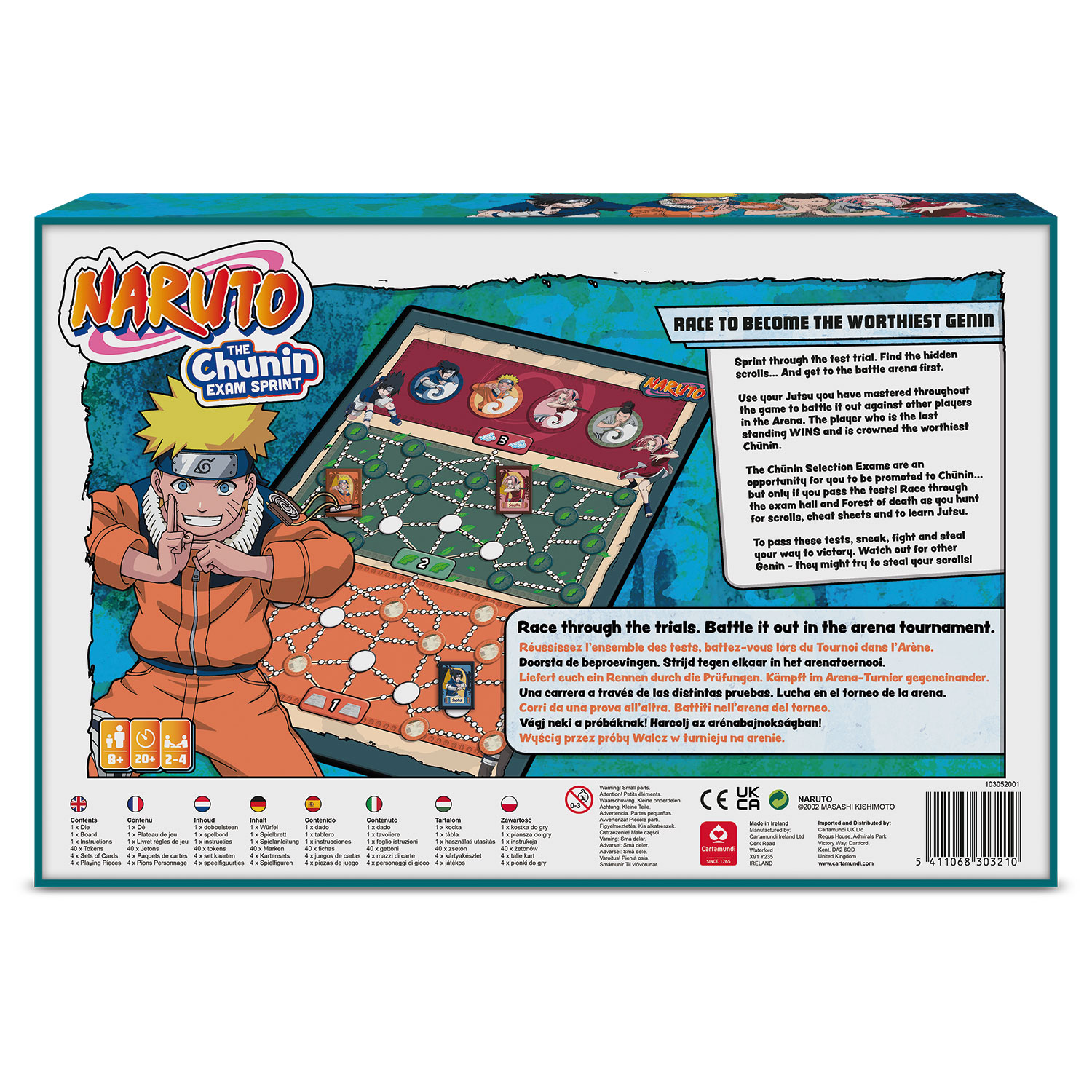 Wer wird der würdigste Chunin? Schlüpft in die Rolle von Sasuke, Sakura, Naruto oder Sikamaru und rast über das Spielfeld durch die verschiedenen Phasen der Prüfung. Findet die versteckten Schriftrollen ... Und seid der Erste in der Kampfarena. Wenn du die erste und zweite Phase erfolgreich bestanden hast, hast du es ins Finale geschafft! Nutzt eure Jutsu, die ihr im Laufe des Spiels gemeistert habt, um in der Arena gegen andere Spieler anzutreten. Der letzte Spieler, der noch steht, GEWINNT und wird zum würdigsten Chunin gekrönt. Inhalt: 1 x Würfel, 1 x Spielbrett, Spielanleitung, 40 Marker, 55 Karten, 4 Standeez-Steckfigure (Sasuke, Sakura, Naruto, Sikamaru)