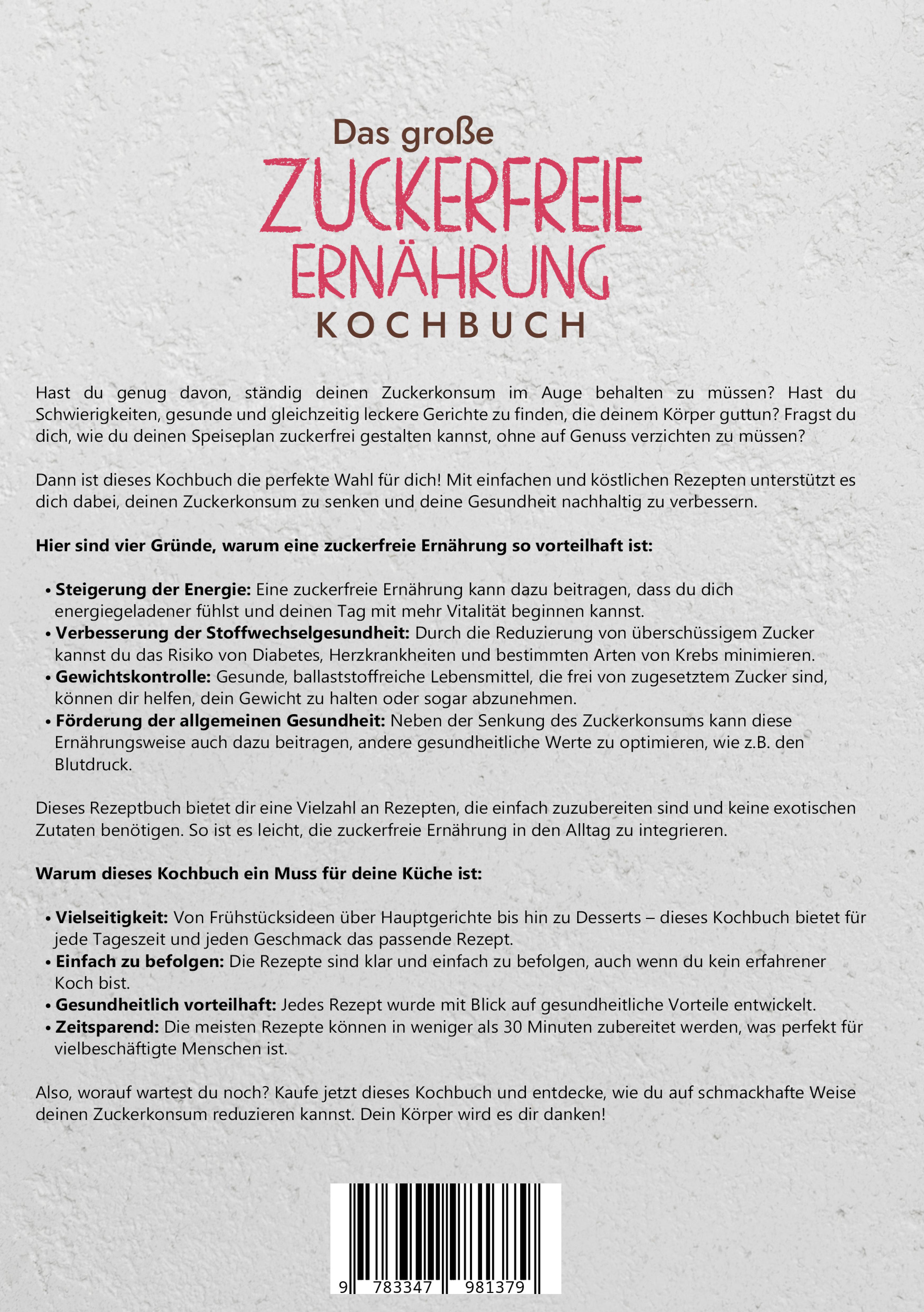 Hast du genug davon, ständig deinen Zuckerkonsum im Auge behalten zu müssen? Hast du Schwierigkeiten, gesunde und gleichzeitig leckere Gerichte zu finden, die deinem Körper guttun? Fragst du dich, wie du deinen Speiseplan zuckerfrei gestalten kannst, ohne auf Genuss verzichten zu müssen?Dann ist dieses Kochbuch die perfekte Wahl für dich! Mit einfachen und köstlichen Rezepten unterstützt es dich dabei, deinen Zuckerkonsum zu senken und deine Gesundheit nachhaltig zu verbessern.Hier sind vier Gründe, warum eine zuckerfreie Ernährung so vorteilhaft ist:- Steigerung der Energie: Eine zuckerfreie Ernährung kann dazu beitragen, dass du dich energiegeladener fühlst und deinen Tag mit mehr Vitalität beginnen kannst.- Verbesserung der Stoffwechselgesundheit: Durch die Reduzierung von überschüssigem Zucker kannst du das Risiko von Diabetes, Herzkrankheiten und bestimmten Arten von Krebs minimieren.- Gewichtskontrolle: Gesunde, ballaststoffreiche Lebensmittel, die frei von zugesetztem Zucker sind, können dir helfen, dein Gewicht zu halten oder sogar abzunehmen.- Förderung der allgemeinen Gesundheit: Neben der Senkung des Zuckerkonsums kann diese Ernährungsweise auch dazu beitragen, andere gesundheitliche Werte zu optimieren, wie z.B. den Blutdruck.Dieses Rezeptbuch bietet dir eine Vielzahl an Rezepten, die einfach zuzubereiten sind und keine exotischen Zutaten benötigen. So ist es leicht, die zuckerfreie Ernährung in den Alltag zu integrieren.Warum dieses Kochbuch ein Muss für deine Küche ist:- Vielseitigkeit: Von Frühstücksideen über Hauptgerichte bis hin zu Desserts - dieses Kochbuch bietet für jede Tageszeit und jeden Geschmack das passende Rezept.- Einfach zu befolgen: Die Rezepte sind klar und einfach zu befolgen, auch wenn du kein erfahrener Koch bist.- Gesundheitlich vorteilhaft: Jedes Rezept wurde mit Blick auf gesundheitliche Vorteile entwickelt.- Zeitsparend: Die meisten Rezepte können in weniger als 30 Minuten zubereitet werden, was perfekt für vielbeschäftigte Menschen ist.Also, worauf wartest du noch? Kaufe jetzt dieses Kochbuch und entdecke, wie du auf schmackhafte Weise deinen Zuckerkonsum reduzieren kannst. Dein Körper wird es dir danken!