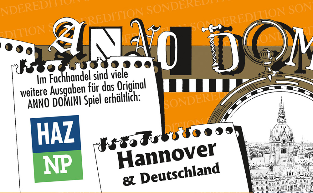 Die ANNO DOMINI Serie besteht inzwischen aus über 30 verschiedenen Themensets. Da ist für jeden Geschmack etwas dabei, und für noch mehr Abwechslung können alle Sets untereinander kombiniert werden. Einfache Regeln und jede Menge Spielspaß machen ANNO DOMINI zum Kultspiel, das auf keiner Party fehlen sollte. Bereits über 950.000 verkaufte ANNO DOMINIs im deutschsprachigen Raum sprechen für sich.