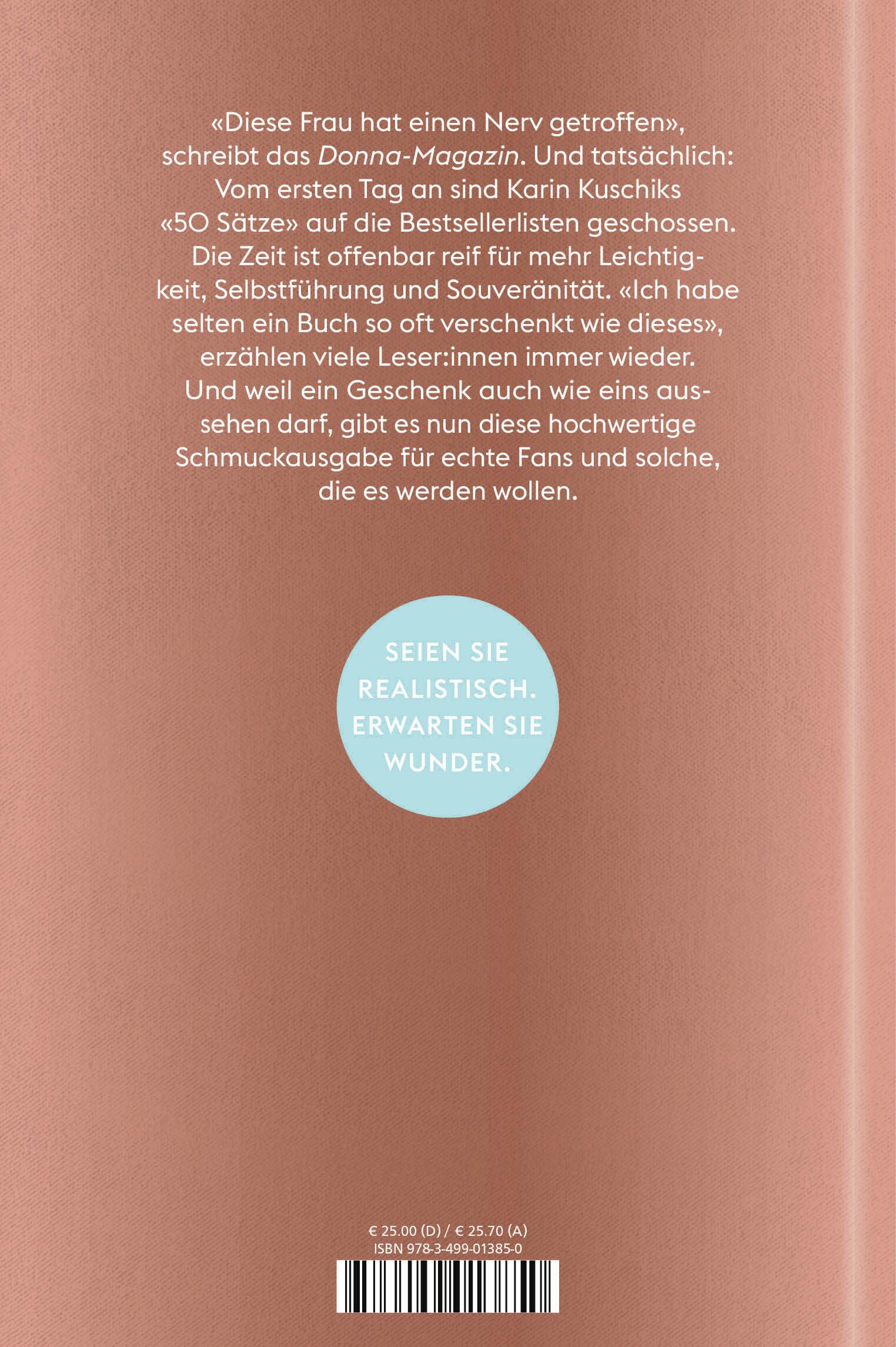 «Diese Frau hat einen Nerv getroffen», schreibt das Donna Magazin. Und tatsächlich: Vom ersten Tag an sind Karin Kuschiks «50 Sätze» auf die Bestsellerlisten geschossen. Kein Wunder, denn das Buch ist eine Schatztruhe voller bestechender, klarer, umsetzungsstarker Tipps, die zeigen, wie wir mit den richtigen Worten zu wahrer Souveränität finden. «Ich habe selten ein Buch so oft verschenkt wie dieses», erzählen viele Leser:innen immer wieder. Und weil ein Geschenk auch wie eins aussehen darf, gibt es nun diese schöne Schmuckausgabe für echte Fans und solche, die es werden wollen.