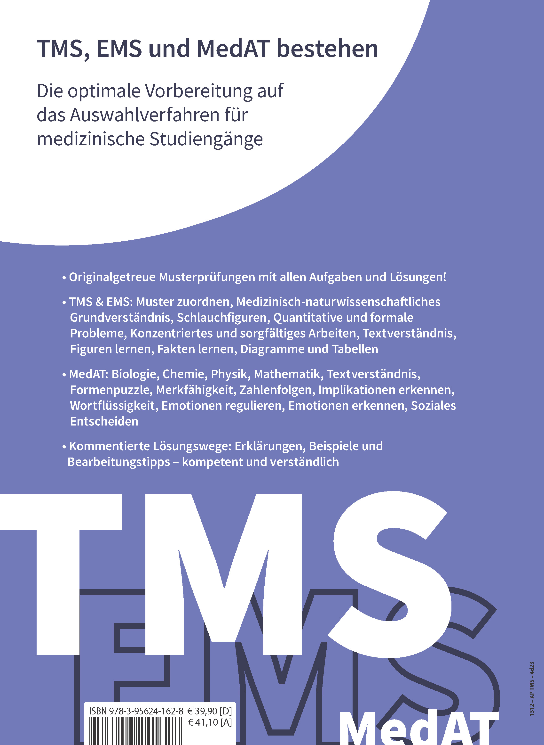 Nach dem Schulabschluss einfach Medizin studieren? So einfach ist das häufig nicht. Mit dem TMS, EMS oder MedAT erwartet dich ein anspruchsvolles Auswahlverfahren, das nur die Besten überstehen. Mit diesem Buch hast du alles zur Hand, was du für den Erfolg im Aufnahmetest für medizinische Studiengänge brauchst.