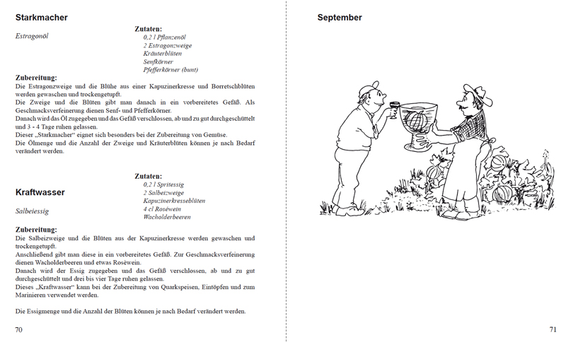 | Schlagworte | Duftschnee, Eisblumen, Vogelhochzeit, Winterhäckerle, Gartensuppe, Kalte Füße, Wiesenzauber, Schneeg • Duftschnee, Eisblumen, Vogelhochzeit, Winterhäckerle, Gartensuppe, Kalte Füße, Wiesenzauber, Schneeglöckchen, Frischkäse, Kohlgeflüster, Spießsüppchen, Gurr-Gurr-Süppchen, Gartenzaun, Häschen • Männertreu, Donnerwetter, Wiesenhütchen, Geschrei, Schlafmützchensoße, Gekrümeltes, Buddel-Bleichstä • Männertreu, Donnerwetter, Wiesenhütchen, Geschrei, Schlafmützchensoße, Gekrümeltes, Buddel-Bleichstängel, Seerose, Maulwurfshaufen, Strammer, Bursche, Heuhaufen, Zartgrünes Nussig • Starkmacher, Kraftwasser, Partykürbis , Sonnenblumen, Rasenmäher, Farbtupferl, Lichtblick, Pfanne, M • Starkmacher, Kraftwasser, Partykürbis , Sonnenblumen, Rasenmäher, Farbtupferl, Lichtblick, Pfanne, Maulwurfskneipe, Äpfel, Fremdgänger, Kuschelig, Rutschpartie, Schwarzer Kater, Schwedenpunsch • Stinkerzehen, Gartenteiche, Zauberbrunnen, Keuliges Windlicht, Vogelnester, Kompostschläfer, Gartens • Stinkerzehen, Gartenteiche, Zauberbrunnen, Keuliges Windlicht, Vogelnester, Kompostschläfer, Gartenschlauch, Spaten, Starkes Wasser, Sauerwasser, Lieblichmacher, Liebliches Wasser, Herzhaftmacher • Verführung, Liebesgeflüster, Liebesrolle, Wiesensüppchen Geschnetzelte, Stängel, Kikeriki, Ringelblü • Verführung, Liebesgeflüster, Liebesrolle, Wiesensüppchen Geschnetzelte, Stängel, Kikeriki, Ringelblümchen, Schubkarre, Einschleichfrüchtchen, Blaublütler, Wuschelkopf, Süße Enthüllung |