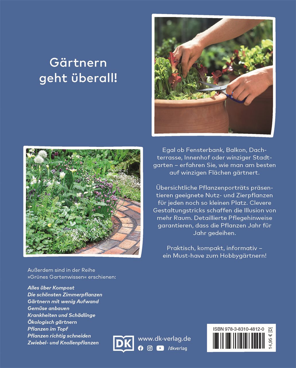 Wie erschafft man aus einer kleinen Fläche ein grünes Paradies? Dieser Gartenratgeber ist perfekt für alle, die wenig Platz zur Verfügung haben. Er erklärt, wie man kleine Gärten so plant, dass die Fläche größer wirkt, als sie ist. Kreative Ideen zur Gestaltung, der richtige Sichtschutz, ein passendes Farbkonzept und eine stimmungsvolle Beleuchtung schaffen eine Wohlfühloase auf kleinstem Raum. Das Buch stellt geeignete Pflanzen vor und zeigt, wie man sie einfallsreich nutzt, wie man vertikal gärtnert und wie man auf kleinster Fläche eine reichhaltige Ernte erzielt. Wissenswertes zu Pflanzenschnitt und Pflanzenschutz runden diesen Gartenratgeber ab. Das ideale Praxisbuch für alle, die mehr aus ihrem Balkon, ihrer Terrasse, ihrem Stadt- oder Schrebergarten herausholen wollen.