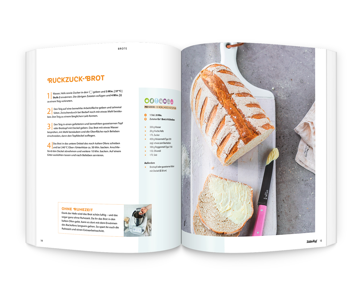 Unsere einzigartigen Rezepte sind darauf ausgelegt, dir eine stressfreie Backerfahrung zu ermöglichen. Vergiss die langen Gehzeiten und komplizierten Vorbereitungen! Mit dem mein ZauberTopf Backbuch "Brote ohne Warten. Schnell und frisch backen mit Thermomix®" zauberst du im Handumdrehen traumhaftes Brot, das jeden Gaumen verwöhnt.