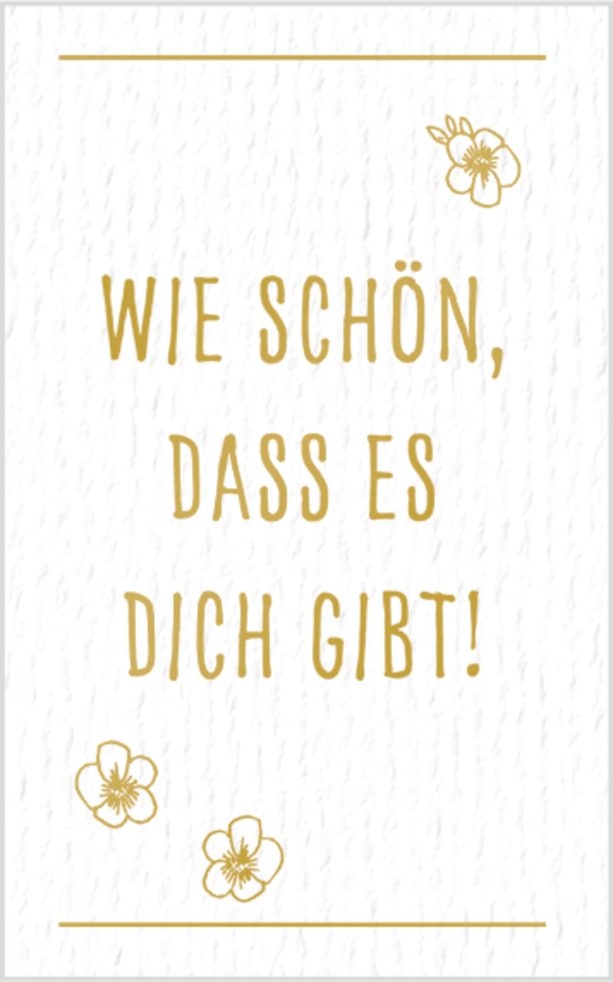 lt;p>Hochwertige Grußkarte für jede Gelegenheit. Mit glänzender Goldfolienveredelung und abnehmbarem, formgestanztem Einsteckkärtchen.