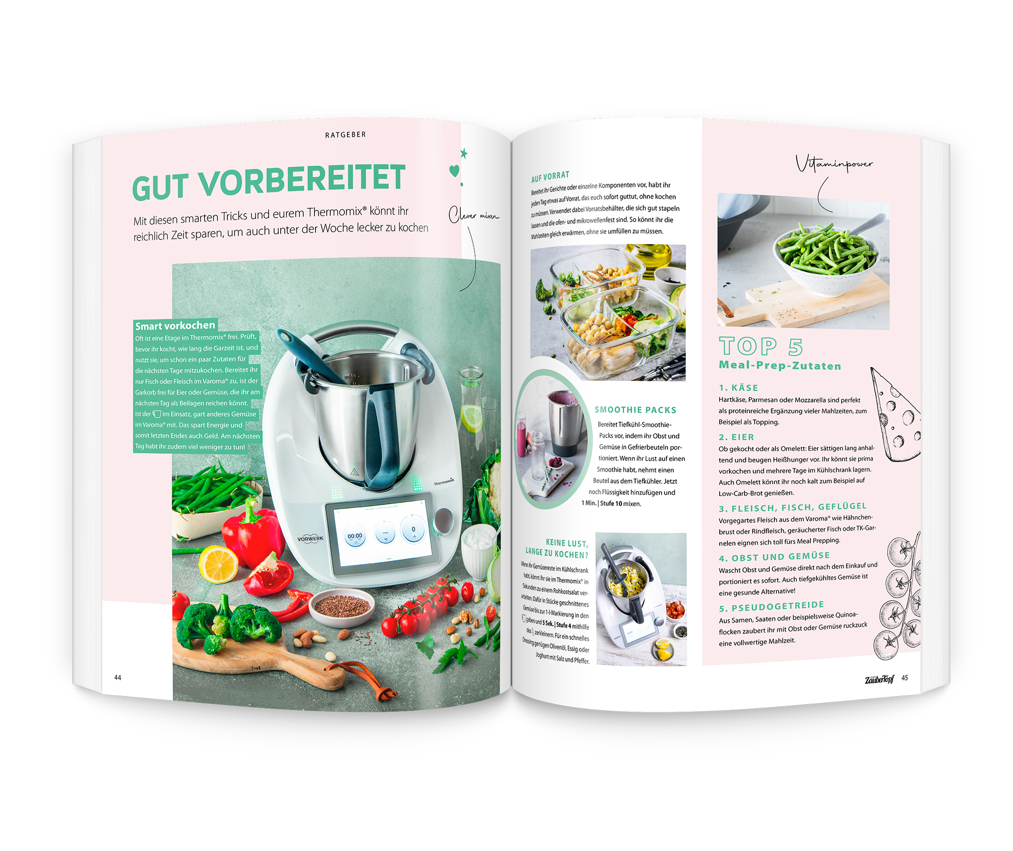 Seit 2016 kocht, backt, fotografiert und filmt die Redaktion von ZauberTopf täglich neue Rezepte und Tricks für den Thermomix®, den Monsieur Cuisine und mittlerweile auch für den Airfryer! In der hauseigenen Versuchsküche mit Foto- und Filmstudio entstehen kreative Ideen, die das Kochen und Backen jeden Tag ein bisschen einfacher und genussvoller machen. Unter der Leitung von Chefredakteurin Vivien Koitka präsentiert die Multi-Channel-Redaktion ihrer riesigen Fan-Gemeinde auf YouTube, Instagram, Facebook und Co. die angesagtesten Mix- und Airfryer-Rezepte sowie smarte Lösungen für alltägliche Küchenherausforderungen. Während Thermomix® und Monsieur Cuisine längst bewährte Stars sind, wächst die Airfryer-Community stetig – mit immer mehr Rezepten, Tipps und Tricks, die perfekt auf die Bedürfnisse der Fans abgestimmt sind.