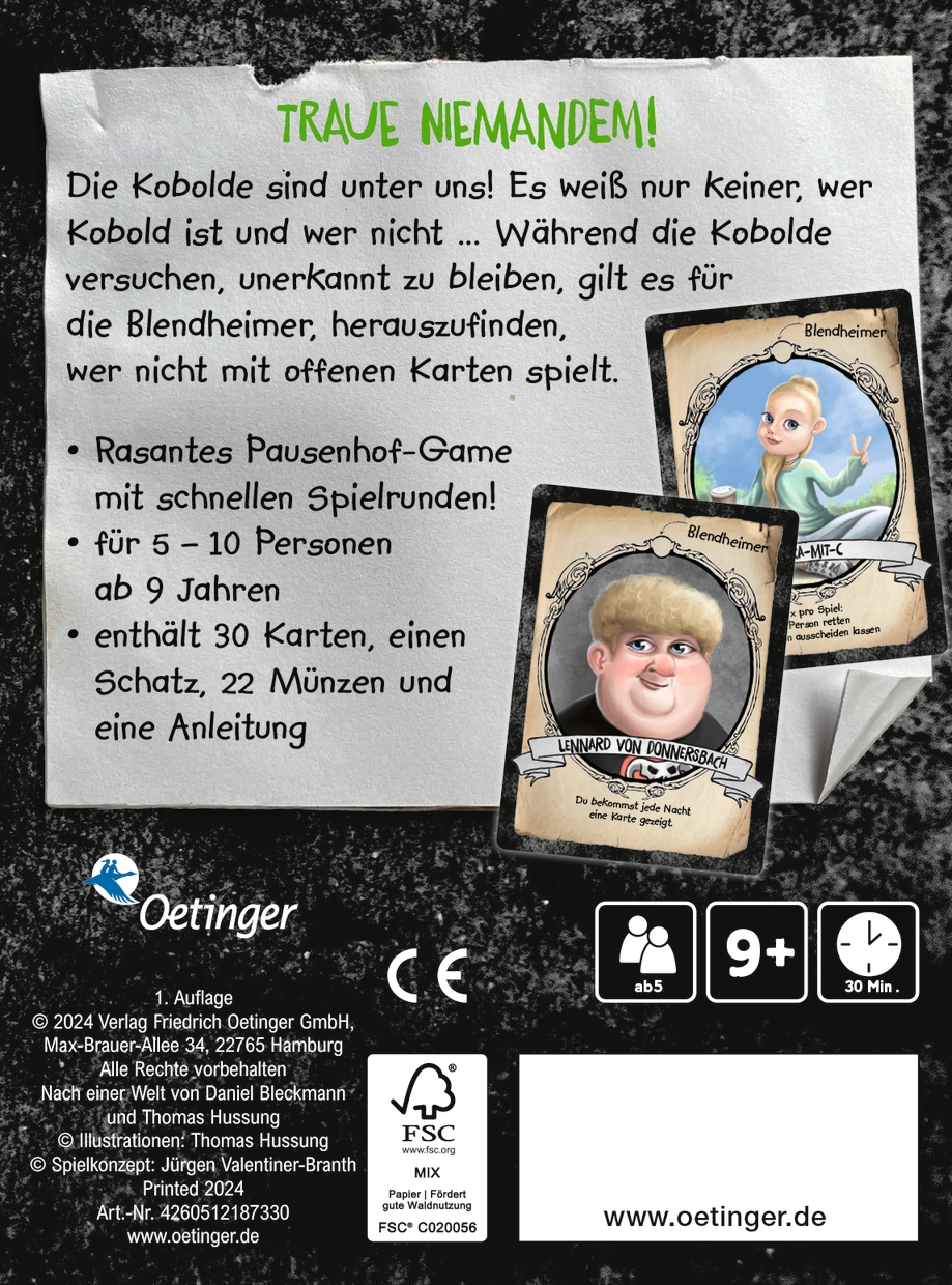 Die Kobolde sind unter uns! Es weiß nur keiner, wer ein Kobold ist und wer nicht... Jeden Tag treffen Dario und seine Freunde einige der gerissensten Kwertzer auf dem Schulhof - letztere allerdings in Menschengestalt. Sie sind äußerlich nicht zu erkennen und verhalten sich alles andere als Kobold-like. Während die Kobolde versuchen, unerkannt zu bleiben, müssen die Blendheimer herausfinden, wer nicht mit offenen Karten spielt.