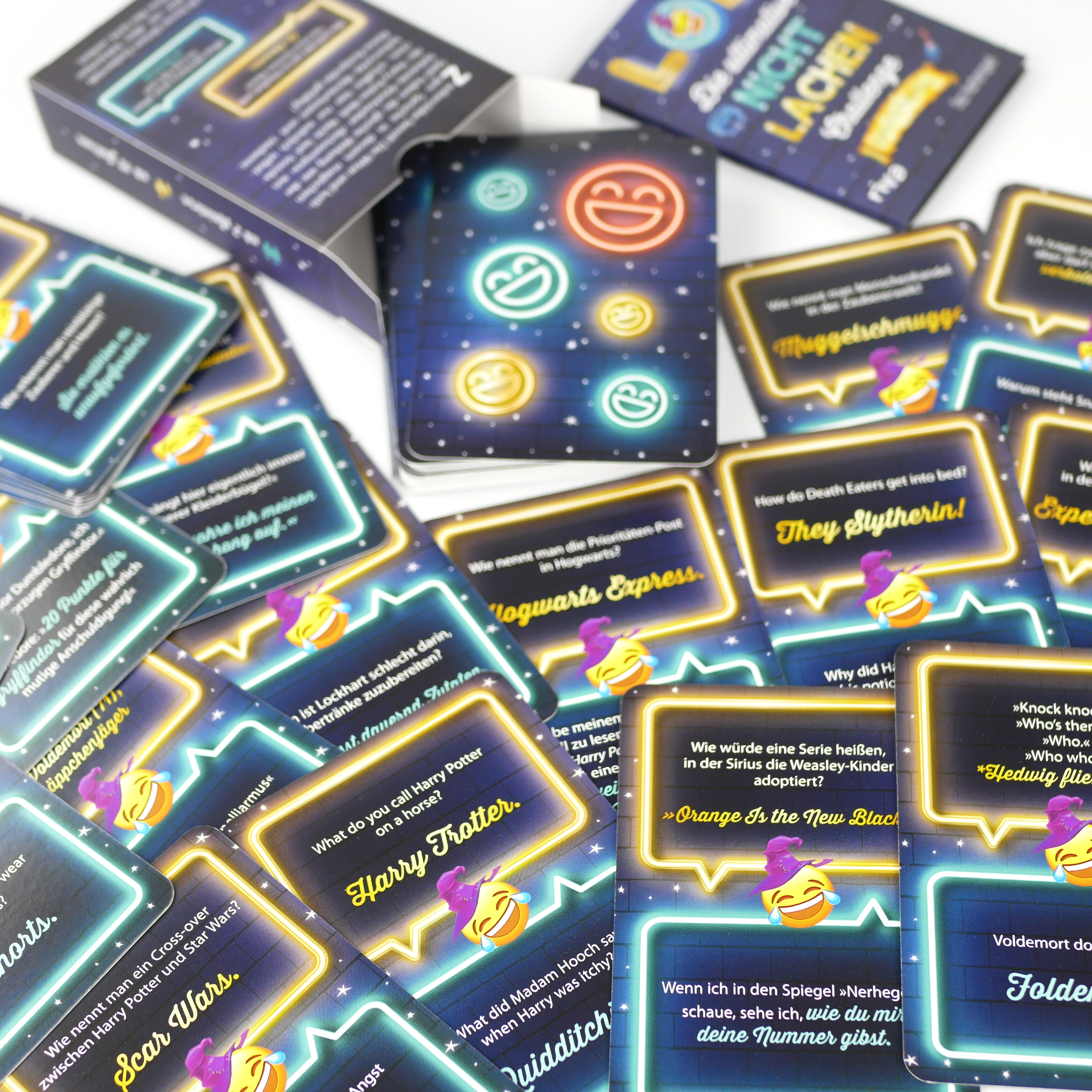 | Schlagworte | challenge • Flachwitz • Geburtstag • Geschenk • Gryffindor • Harry Potter • Hogwarts • Humor • Karten • Last one laughing • lol • lustig • nicht lachen Challenge • Party • Slytherin • Spaß • Spiel • Urlaub • Voldemort • Weihnachten • Zauberer • zu verschenken |