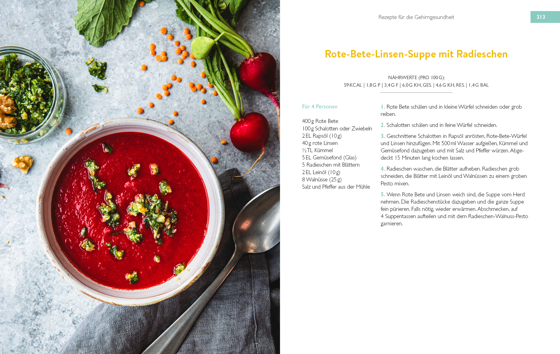 | Schlagworte | ADHS • Backen • Beeren • Eintöpfe • Gesundheit • Glückshormone • Grüntee • Ingwer • Kochen • Kurkuma • Magnesium • Mental • Mental Health • mindful eating • Obst • Pfannengericht • Probiotika • PTBS • Rezeptbuch • Salate • Selbstfürsorge • Serotonin • Smoothies • Snacks • Stressabbau • Suppen • Therapie |