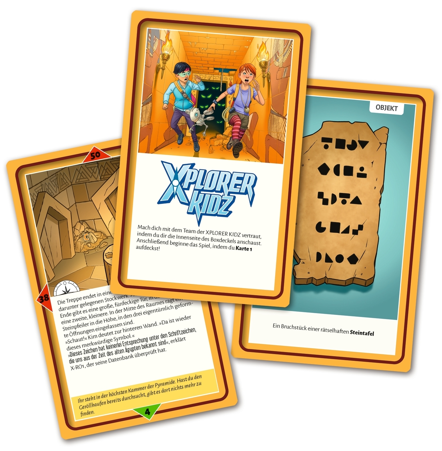 In diesem interaktiven Spielabenteuer werden die Mitspielenden auf 50 Karten durch eine spannende Geschichte geführt. Gemeinsam mit den Xplorer Kidz reisen die Kinder an geheimnisvolle Ort, erforschen Schauplätze wie Pyramiden und entscheiden selbst, welchen Weg sie gehen oder welche Tür sie öffnen wollen.