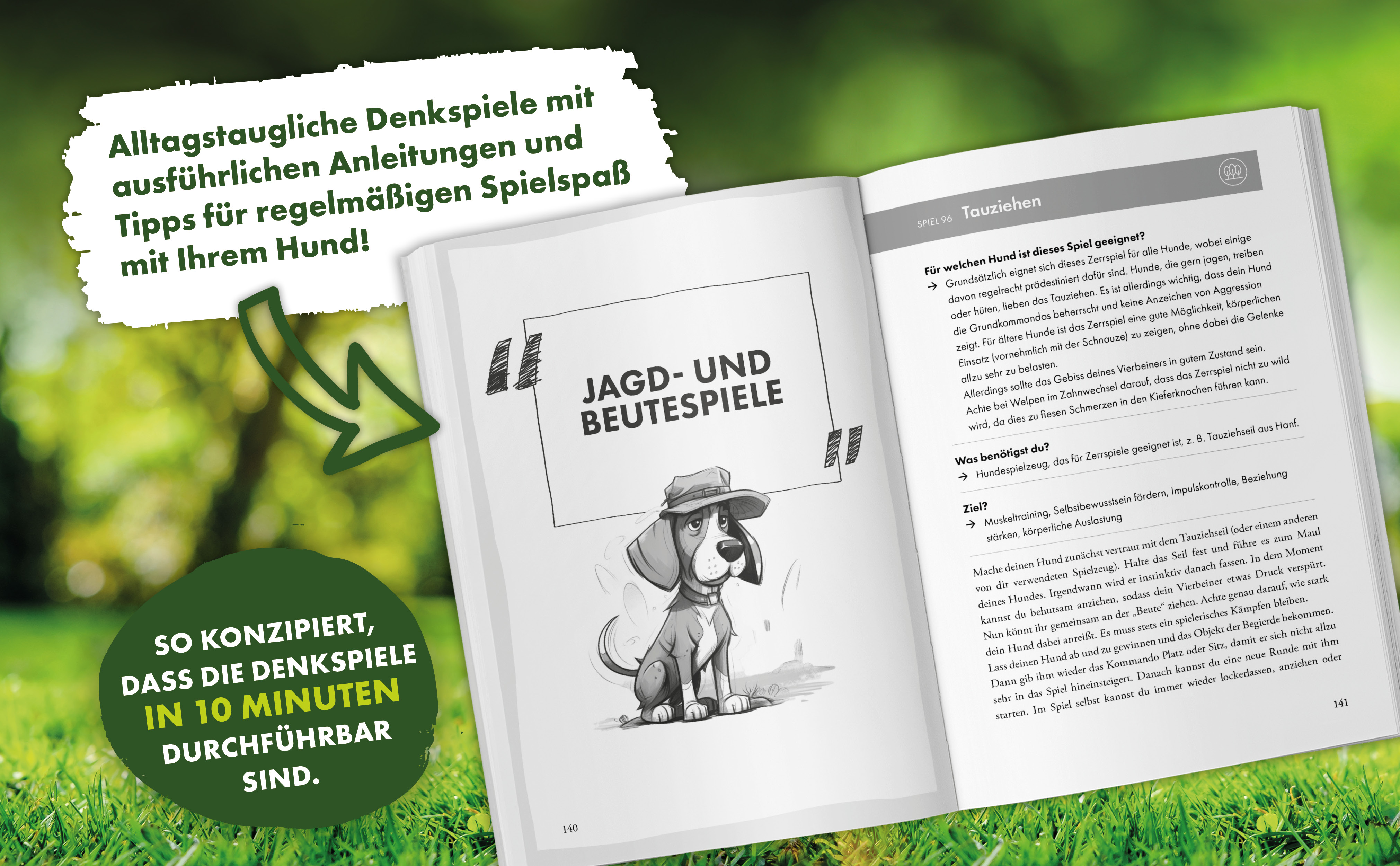 Ob für indoor oder outdoor, Anfänger oder Hundeprofi, bei unseren 111 Denkspielen ist garantiert auch für Sie und Ihren Hund das Passende dabei.