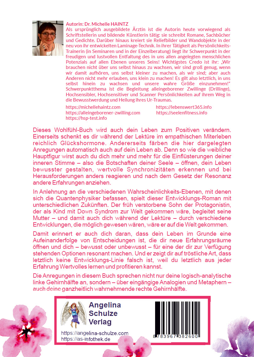 Dann zeigen dir die Figuren in diesem Roman, wie du im Spiel mit Zeitlinien deine Vorstellungskraft nützen kannst, um verschiedene Varianten deiner Zukunft zu "kosten". Dies erweitert deinen Erfahrungsschatz und hilft dir, dich für jene Entwicklung zu entscheiden, die sich für dich am ehesten erfüllt und erfüllend anfühlt.