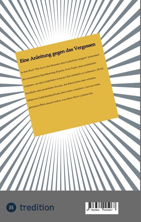 Sven Frank ist nicht nur als Gründer der Speedlearning School und Autor des Buches „Speedlearning – die Erfolgstechniken für Beruf, Schule und mehr“ bekannt, sondern hält als Speedlearning-Experte zahlreiche Vorträge und Workshops zum Thema Lernen im Business, tritt in Radio- und TV-Sendungen auf und übernimmt Beratertätigkeiten im Advisory Board internationaler Unternehmen. Er selbst beherrscht bislang zehn Sprachen fließend und war bis 2014 Präsident der weltweiten Interlingua Union. Zudem betreibt er den Erfolgspodcast "Die Speedlearning Show". Seit nun über 20 Jahren beschäftigt sich Sven Frank mit der Frage, wie es gelingt, Sachverhalte besser zu verstehen und neues Wissen schneller als sonst anzueignen. Vom Trainieren von Gedächtnistechniken, über Superlearning, Lernen mit Hypnose und modernste pädagogische Konzepte – alles hat der Experte in der Praxis erprobt und die effizientesten Techniken in seiner Speedlearning Methode vereinigt.