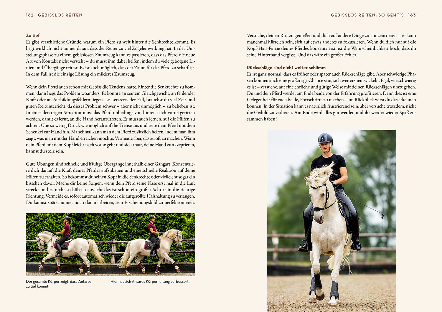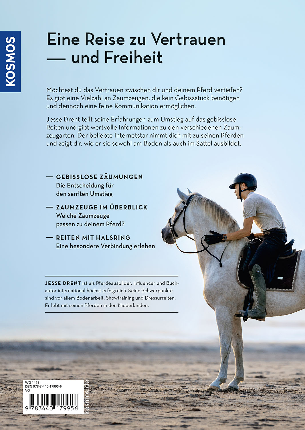 "Fokussiere dich auf das Positve", das ist das Motto von Jesse Drent, der als Internet-Star aus dem Niederlanden auch in Deutschland eine große Fangroup hat. Dieses Buch enthält alle Informationen, die Reiterinnen und Reiter benötigen, um mit gebisslosen Zäumungen zu reiten. Mit Informationen für den Ein- und Umstieg, zu den verschiedenen Zäumungen und viele Erfahrungsberichte von Jesse Drent und seinen Pferden ist dieser Ratgeber der ideale Begleiter..