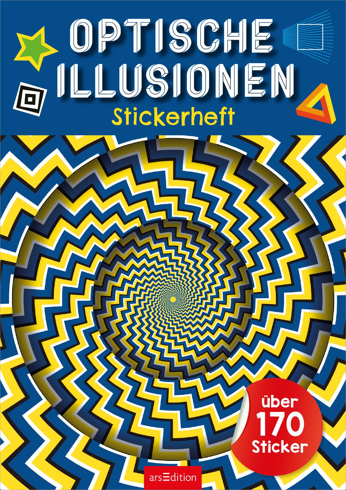 Entdecke eine Vielzahl an optische Illusionen und finde heraus, wie die Trugbilder funktionieren und vervollständige mit den beiliegenden Stickern die optischen Täuschungen.