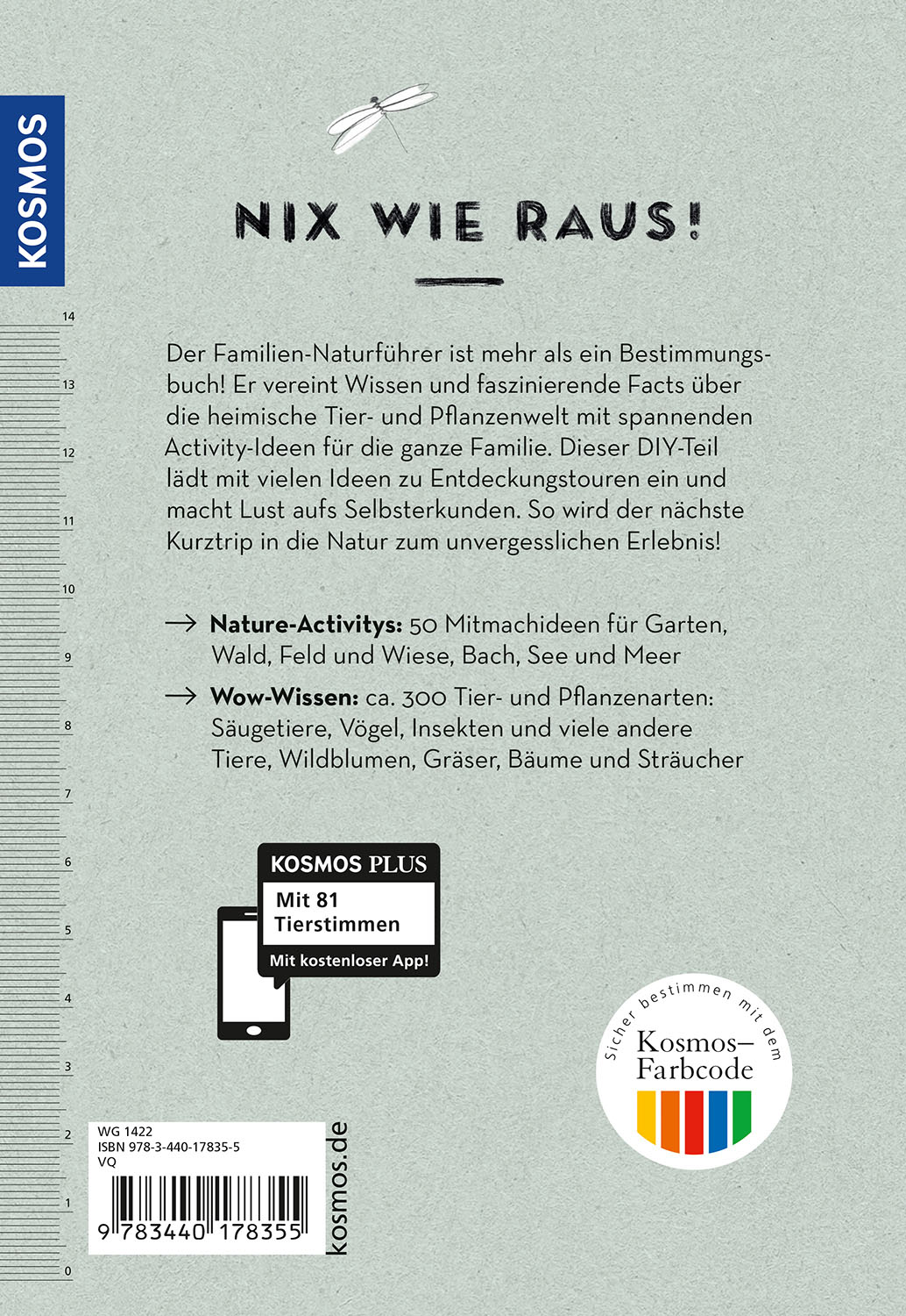 "Der Kosmos-Naturführer für die ganze Familie" ist mehr als ein bloßes Bestimmungsbuch! Er vereint Wissen und faszinierende Facts über die heimische Tier- und Pflanzenwelt mit spannenden Activity-Ideen für die ganze Familie. Kurzweilig und leicht verständlich wird die bewährte Kosmos-Kompetenz der Artporträts verschiedener Artengruppen durch einen DIY-Teil mit unzähligen Anregungen ergänzt. Dieser lädt mit vielen Ideen nicht nur zu großen oder kleinen Entdeckungstouren im heimischen Garten oder auf dem Feld um die Ecke ein, sondern macht mit einfachen Rezepten sowie Bastel- und Beobachtungstipps Lust zum Selbsterkunden. So wird der nächste Kurztrip in die Natur zum unvergesslichen Erlebnisausflug für die ganze Familie!