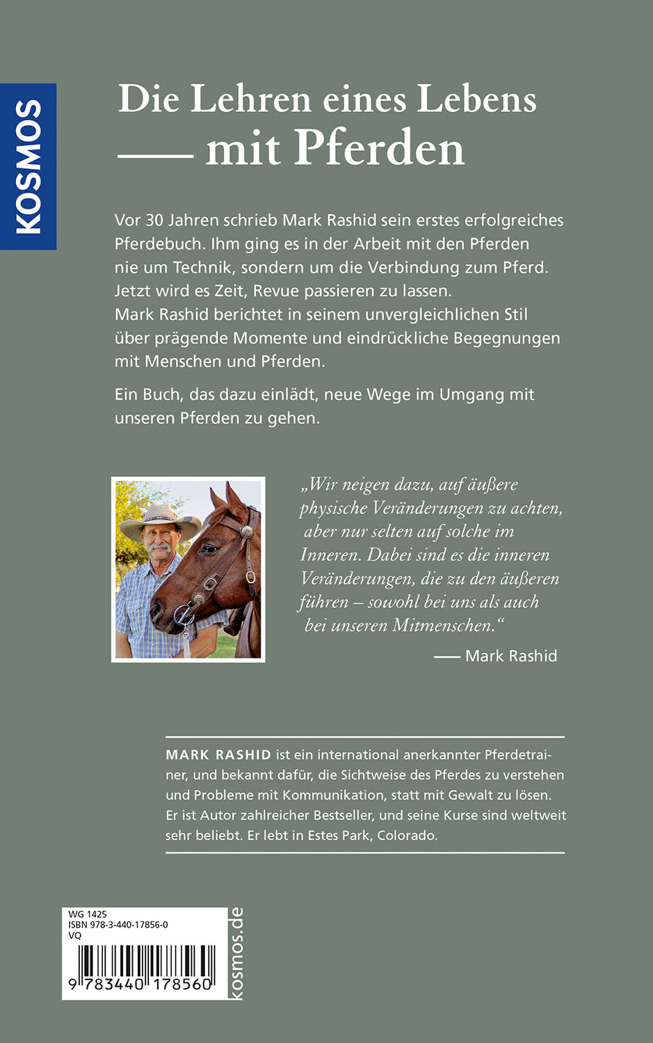 Emotional und unterhaltsam erzählt Mark Rashid, der Horseman aus Colorado, von unvergesslichen, beeindruckenden und ganz persönlichen Begegnungen mit Pferden, die sein Leben nachhaltig geprägt haben. Ein Buch, das man zurecht als eine Zusammenfassung seines Lebenswerks bezeichnen kann.