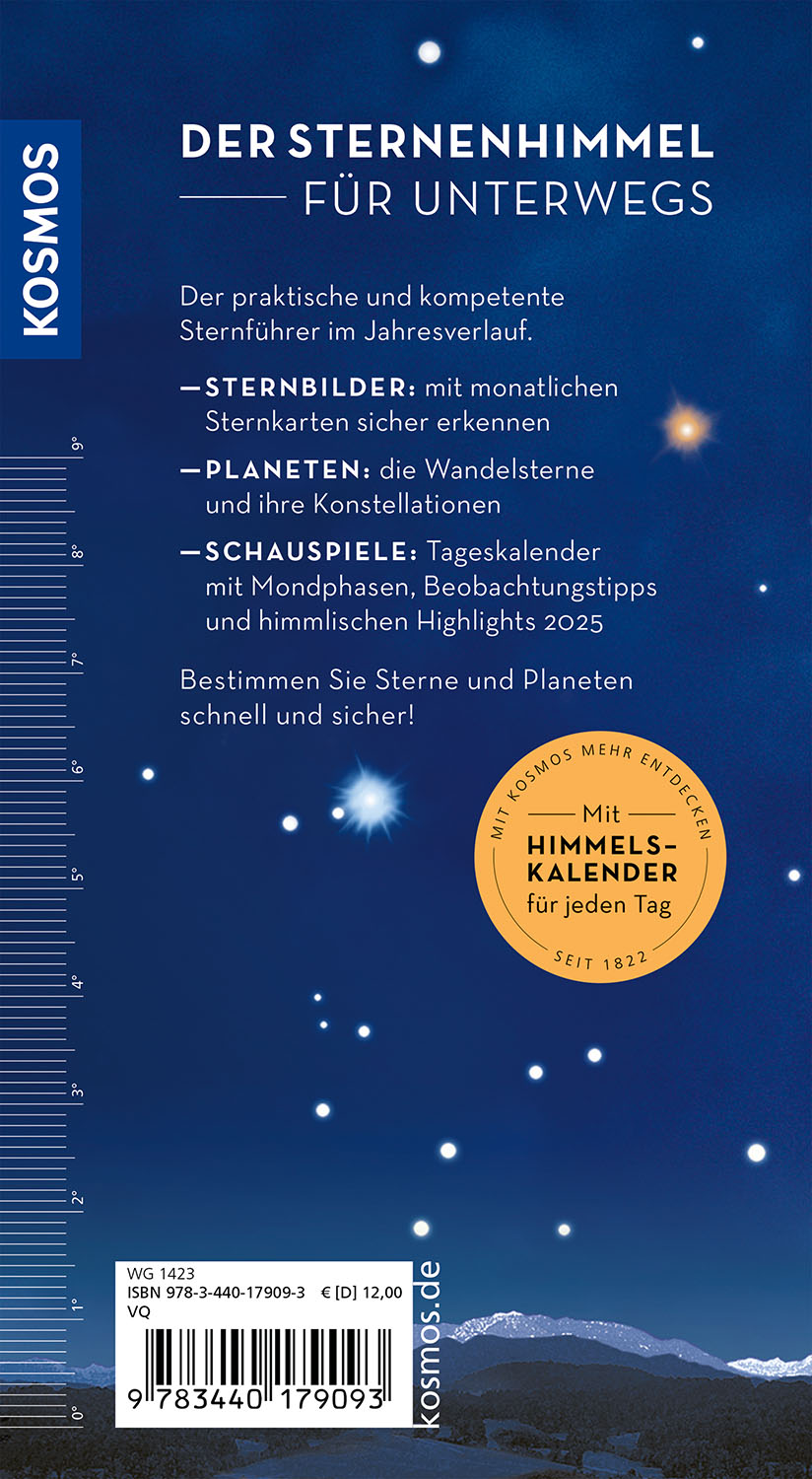 Hier kommen Naturfreunde und Astronomie-Einsteiger auf ihre Kosten. Das praktische Jahrbuch für die Jackentasche fasst kurz und übersichtlich alles Wichtige zum Himmelsgeschehen des Jahres zusammen. Ein monatliches Kalendarium, Sternkarten und Infos zum Lauf von Sonne, Mond und Planeten helfen dabei, kein Himmelsschauspiel zu verpassen. Zahlreiche Beobachtungstipps und Anleitungen zum Auffinden der Sternbilder runden das beliebte Jahrbuch ab. Himmlische Highlights 2025: partielle Mondfinsternis am 15. März, partielle Sonnenfinsternis am 29. März und die totale Mondfinsternis am 7. September.